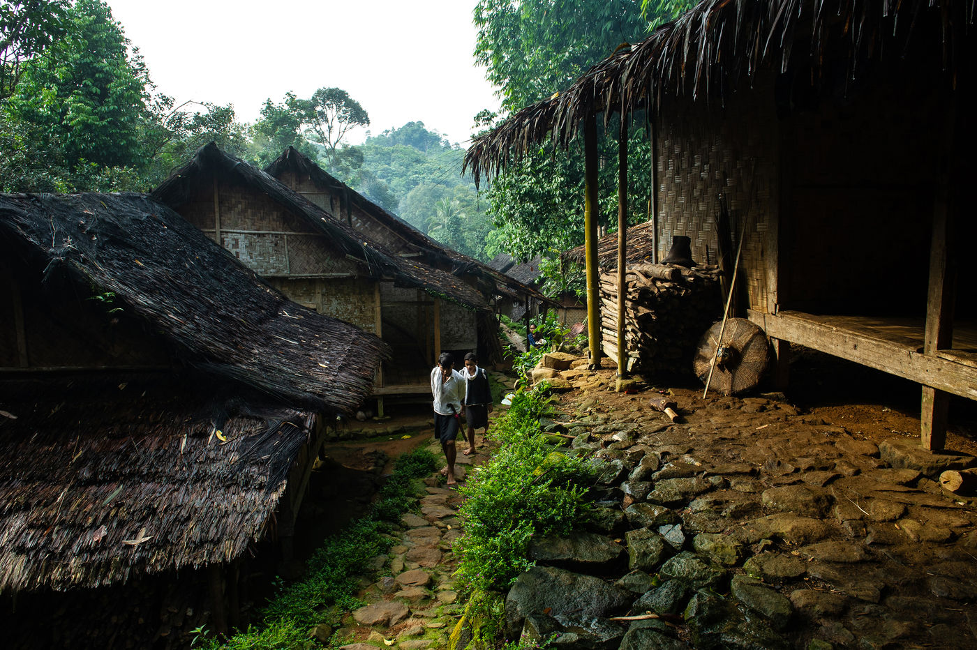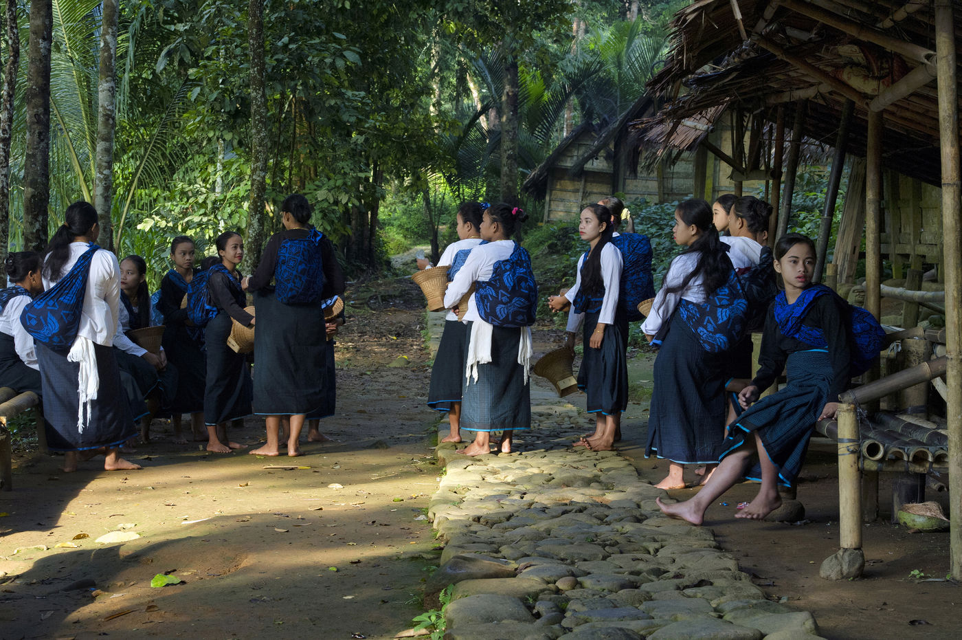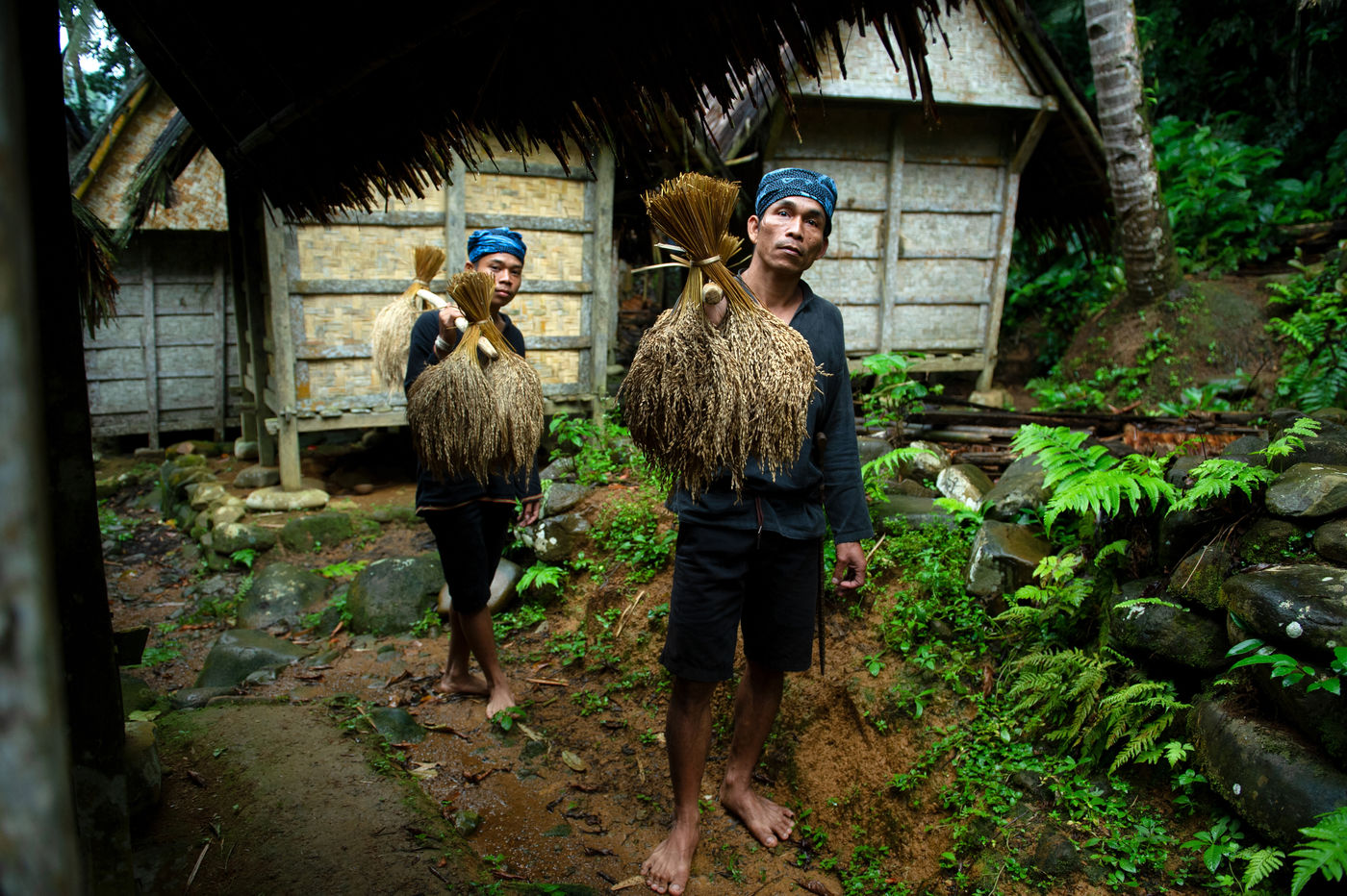In Indonesia, in the province of Banten to the west of Jakarta, the Baduys voluntarily live away from the modern world since the 16th century from within a tropical forest in a protected region of more than 5000 hectares. They respect the Pikuku, a system of more than 600 strict rules. Everything that is modern is taboo. Electricity is banned, government education, the change of the course of a river, the soap, the shoes ... They apply the concept of no change or the least possible change: "what is short must not be lengthened, what is long should not be shortened ". When they cut a tree, they have to plant another one the same day. They grow rice for food and depend only on rain for its cultivation. Their forest has remained intact since their arrival in the region.