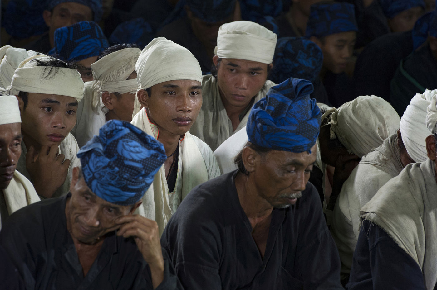 La communaute d'environ 13.000 membres s est divisee en deux - le cercle interieur plus strict reste "pur", les Baduys Dalam, habilles de blanc et noir, vivant dans 3 villages et le cercle exterieur plus souple, les Baduys Luar, habilles de bleu et noir repartis dans environ 40 villages.