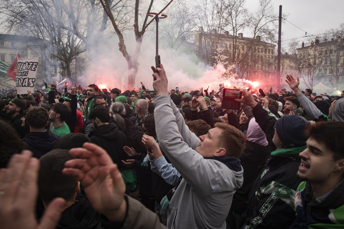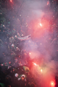 Ce samedi 29 mars, plus de 3000 personnes se sont réunies dans les rues de Saint-Etienne pour apporter leur soutien aux groupes de supporters de l'équipe de l'AS Saint-Etienne menacés de dissolution par le ministère de l'Intérieur. Ce dernier a en effet décidé de saisir la commission nationale consultative de prévention lors des manifestations sportives afin d’engager des procédures à l’encontre de trois groupes français de supporters violents, dont les Magic Fans et les Green Angels de l’ASSE.