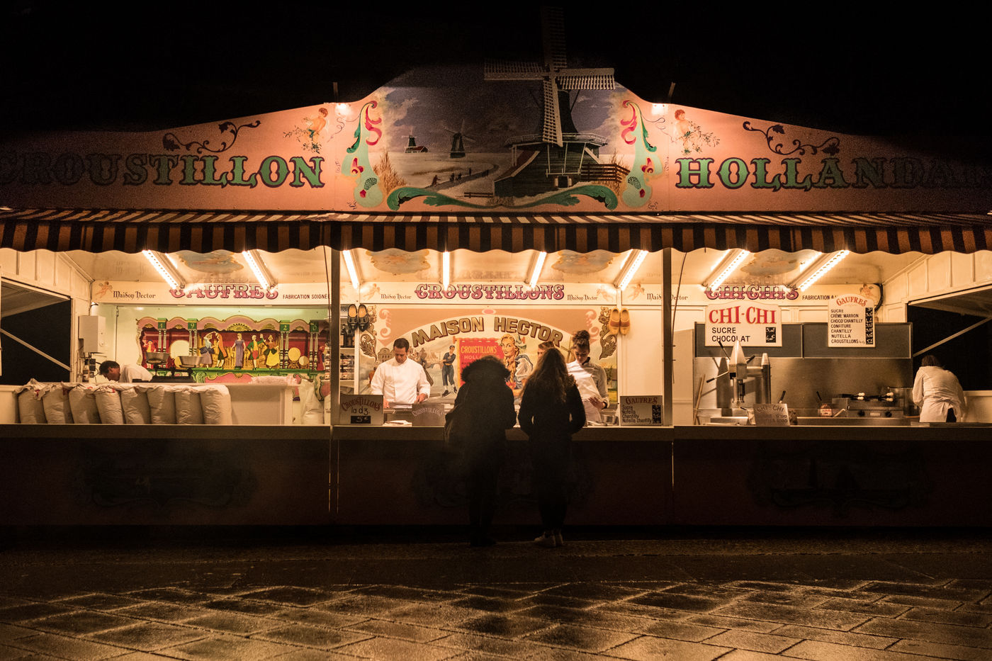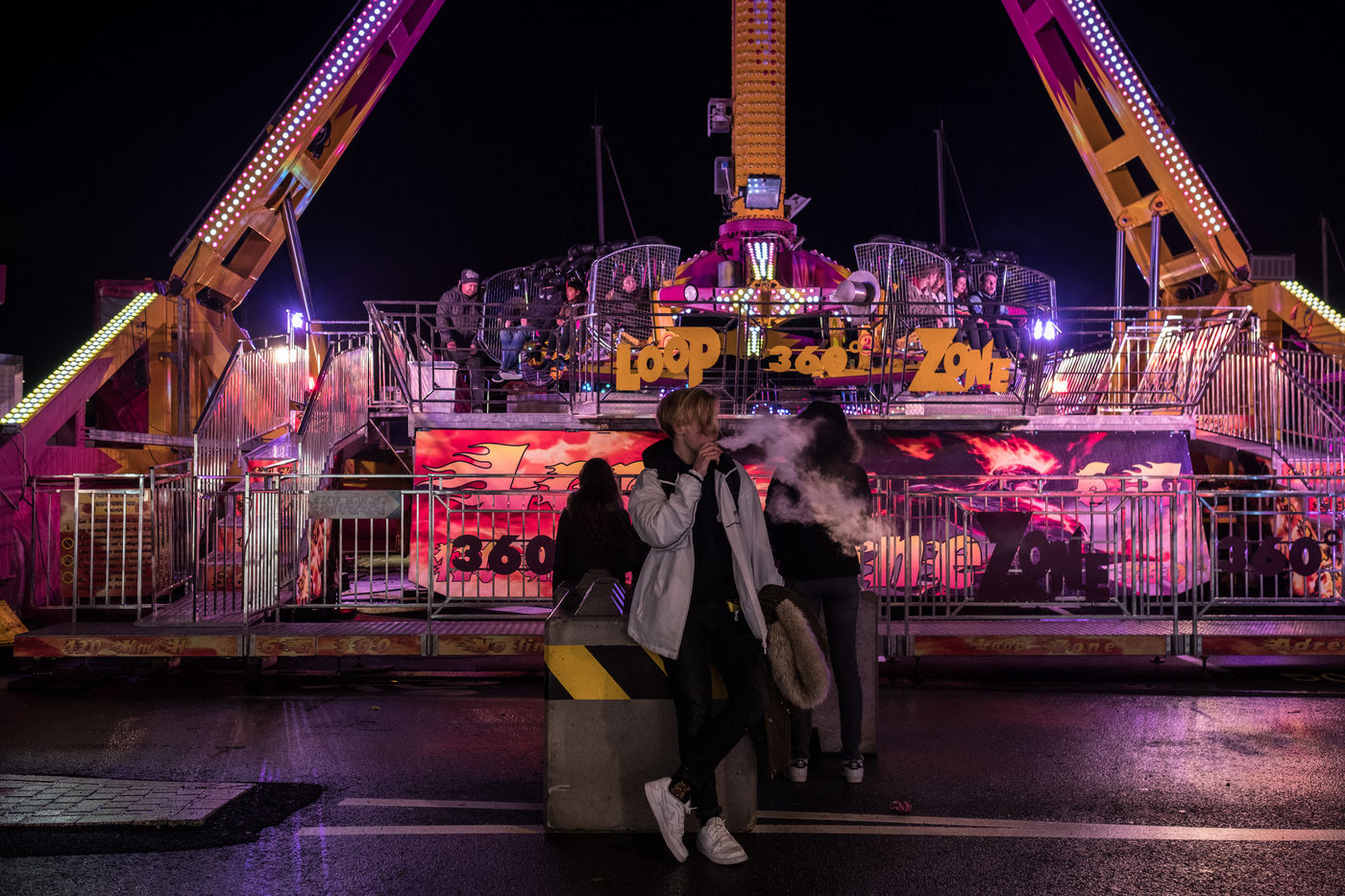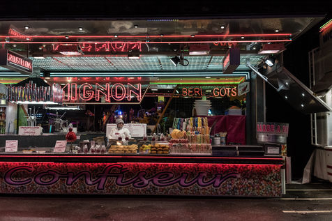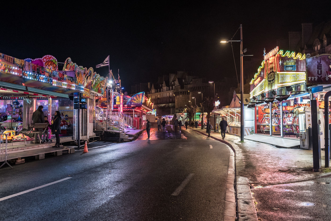 Carousels, Bal-Trap, neon lights, waffles, candy apples and a few onlookers on this rainy winter evening in St Malo.