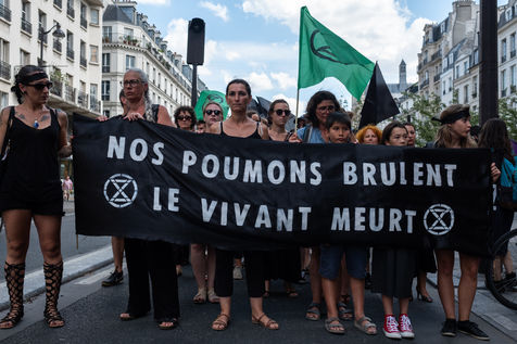 Pacifist action by the Extinction Rébellion group in Paris, in reaction to the fires in the Amazon and the inaction of the states.