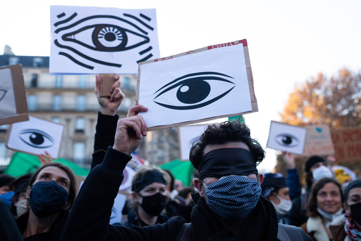 Demonstration against the global security law between Place de la République and Bastille in Paris.