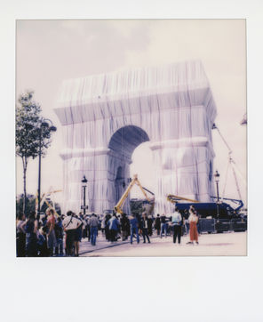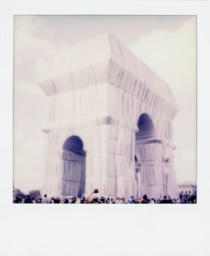Polaroid SX70 of the monumental and ephemeral work of Christo and Jeanne-Claude on the Arc de Triomphe in Paris. September 2021.