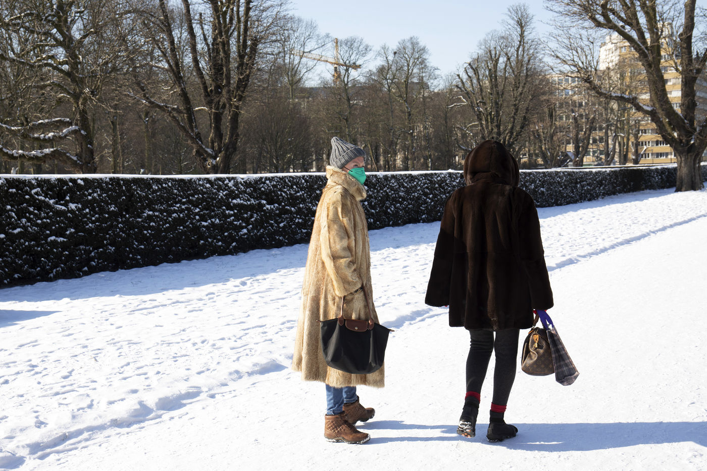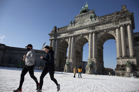 Illustration pictures of Cinquantenaire Park in Brussels under the snow.