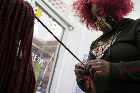 Hairdressers shops in Matongé, a multi-ethnic neighborhood in Brussels. Hairdressers were allowed to reopen in Belgium on February 13, 2021 after being closed to limit the spread of Covid-19.