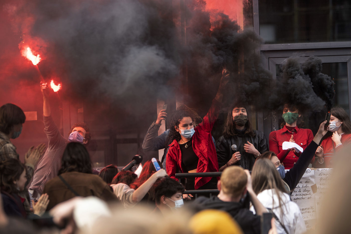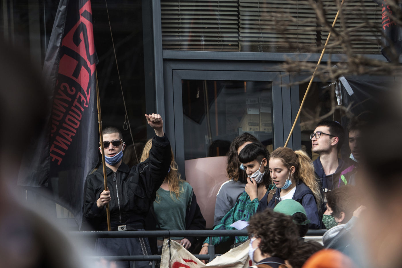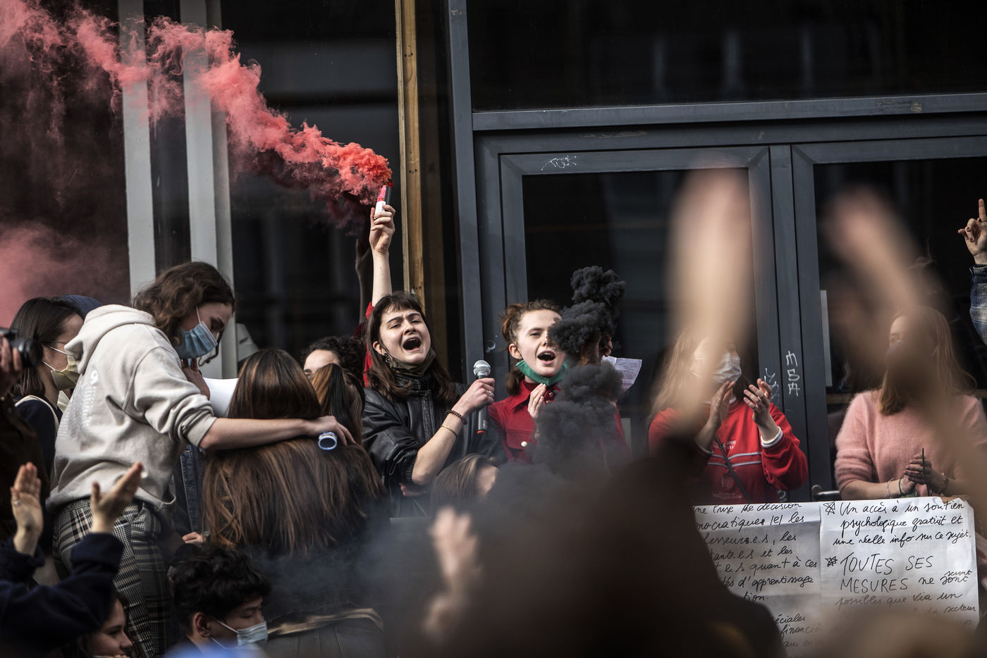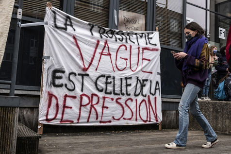 Students protest at Libre University in Brussels against the isolation and precariousness due to the Covid-19 crisis. They denounce the lack of resources put in place since the start of the pandemic, as well as the insufficiency of the new measures announced and the non-consultation of the government and universities with students with respect to the decisions taken.