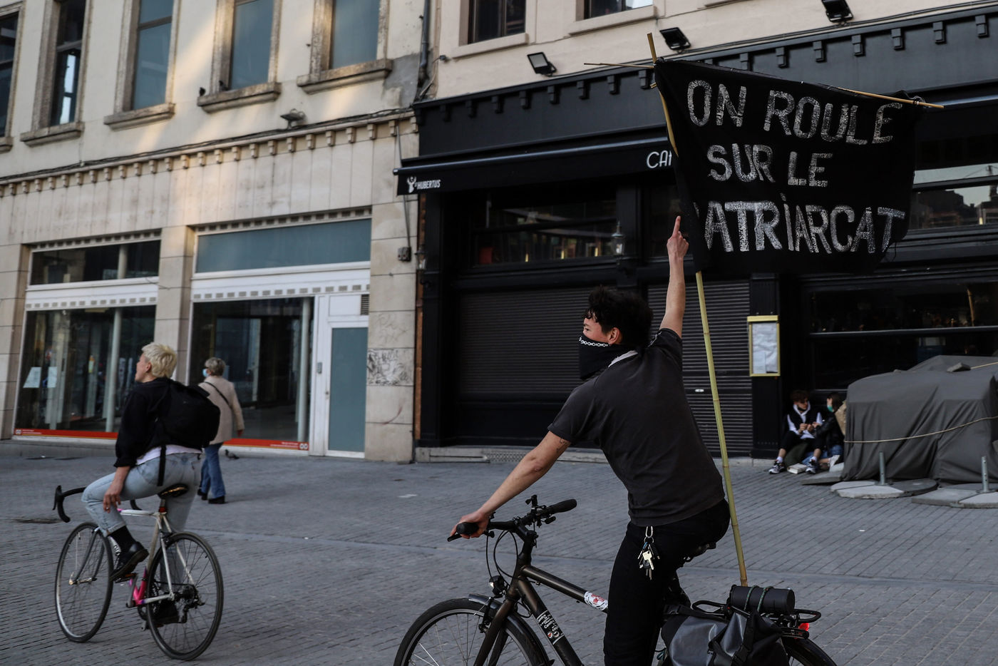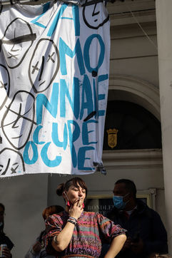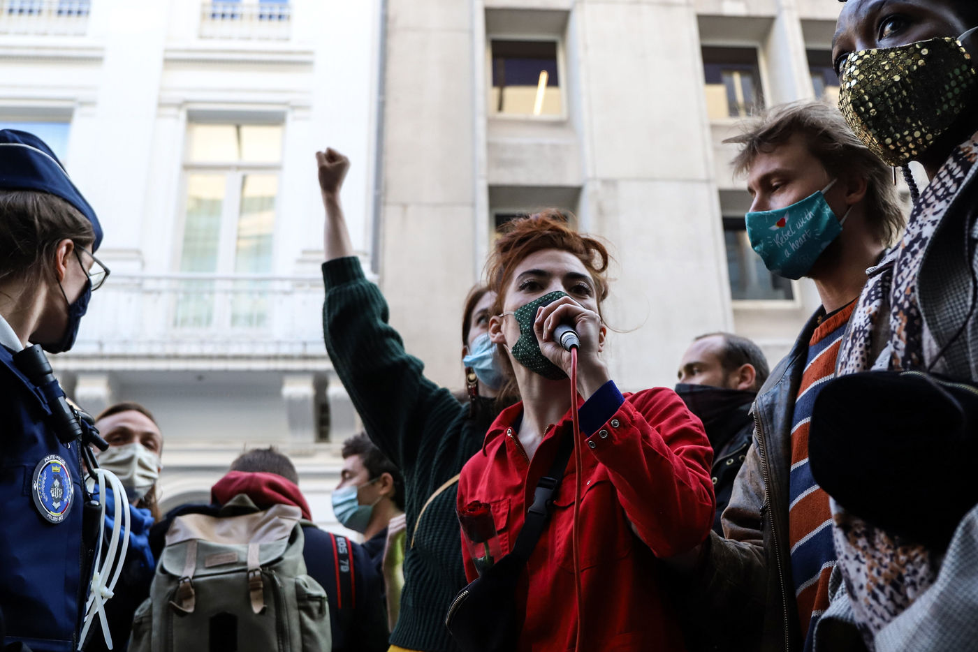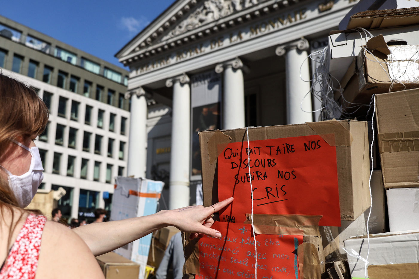 Dernier jour d'occupation du théâtre La Monnaie à Bruxelles. La police intervient pour expulser les occupants. Le théâtre avait été occupé le 3 Avril 2021 par un collectif d'artistes, de travailleurs du secteur culturel et d'étudiants pour protester contre la gestion de la crise sanitaire par le gouvernement fédéral, notamment en ce qui concerne les employés du secteur culturel et artistique et de l'hôtellerie.