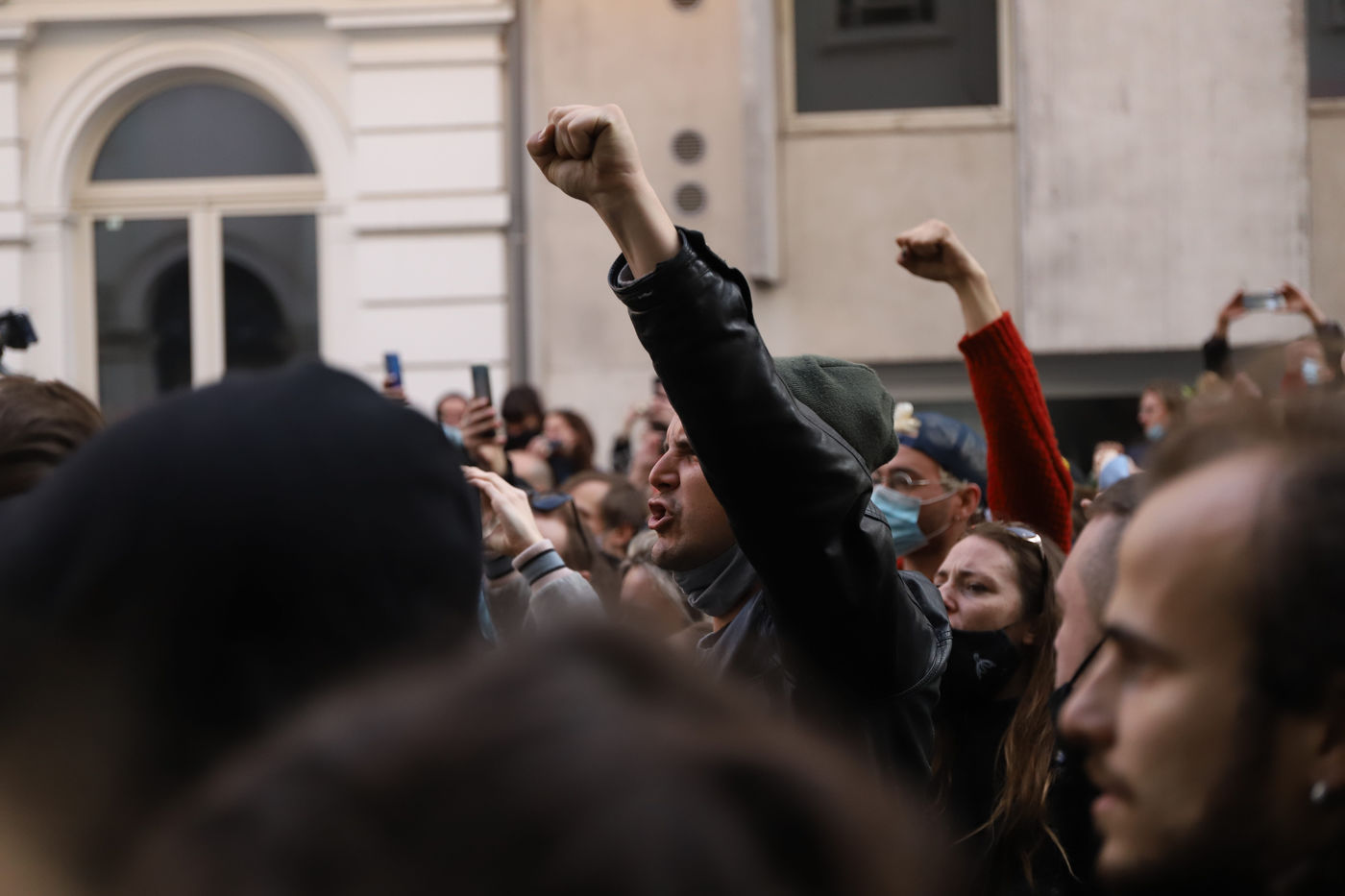 Last day of occupation of La Monnaie theater in Brussels. The police intervened to evict the occupants. The theater was occupied on April 3, 2021 by a collective of artists, workers in the cultural sector and students to protest against the management of the health crisis by the federal government, in particular with regard to employees in the cultural and artistic sector and the hospitality industry.