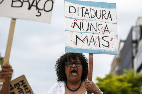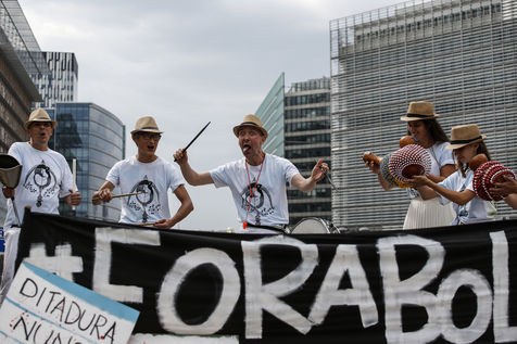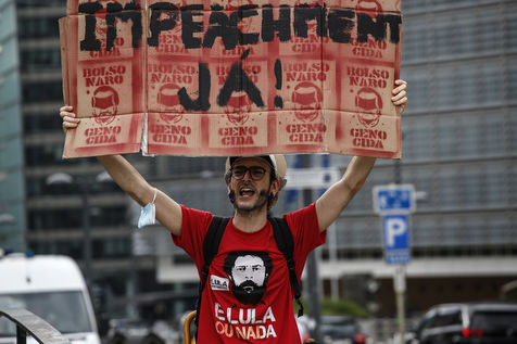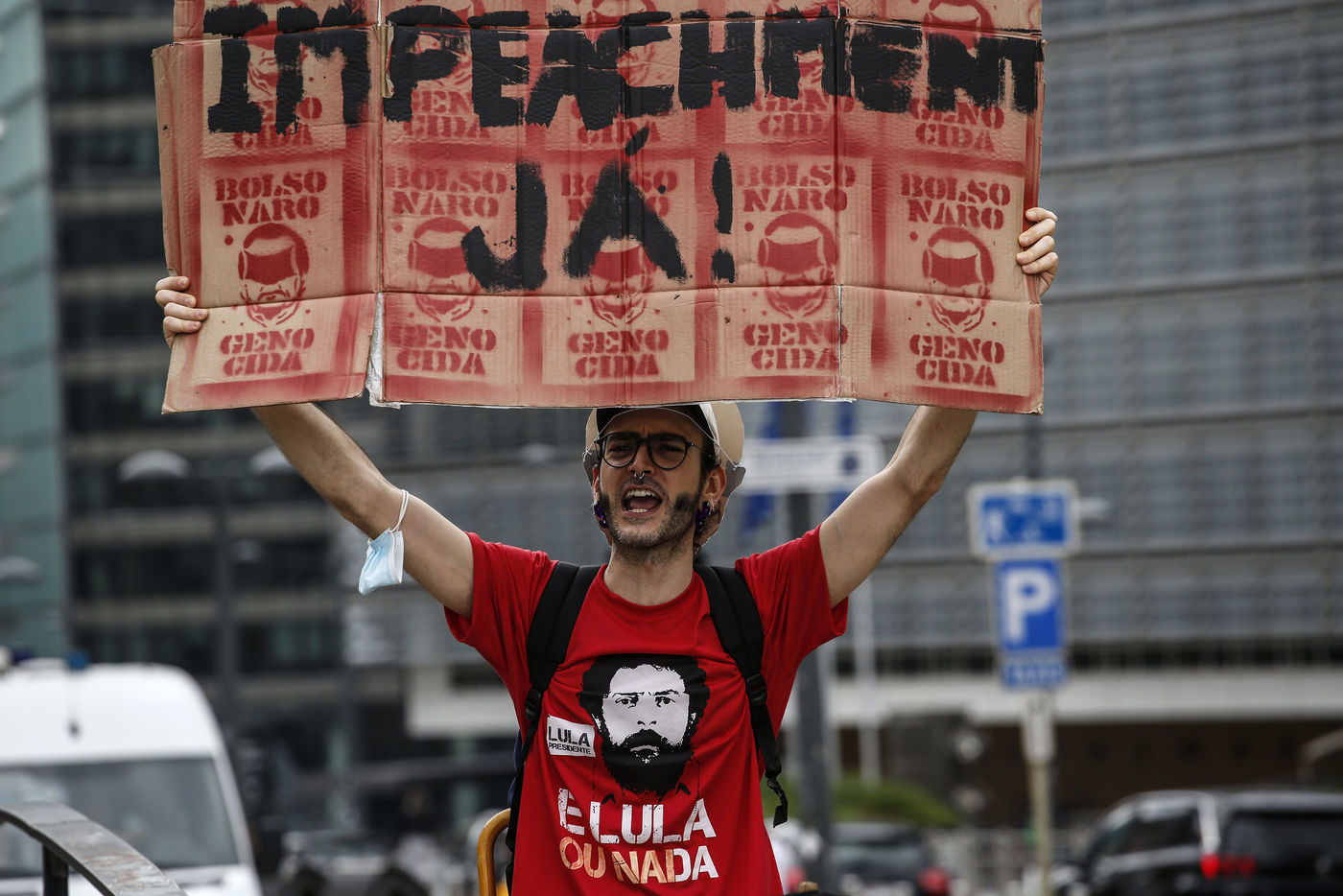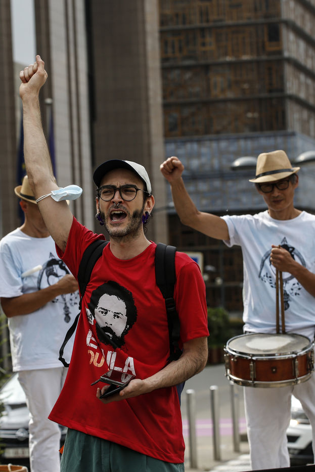 Demonstration against the Brazilian President Jair Bolsonaro and how his government dealt with the Covid-19 crisis near the European headquarters. Brussels, Belgium, July 24, 2021.
