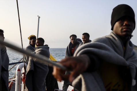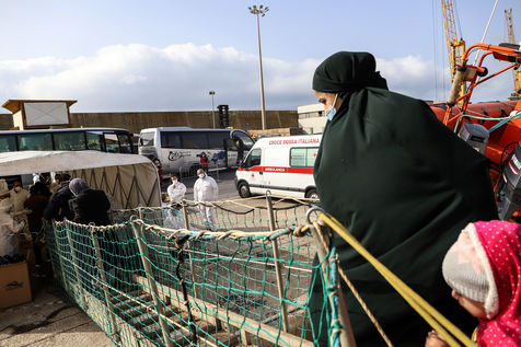 Migrants saved by the humanitarian rescue ship Sea-Watch 3 disembark in the port of Pozzallo, Sicily