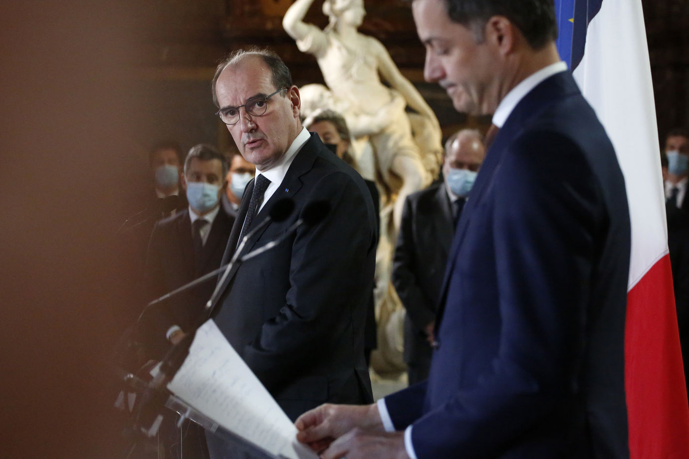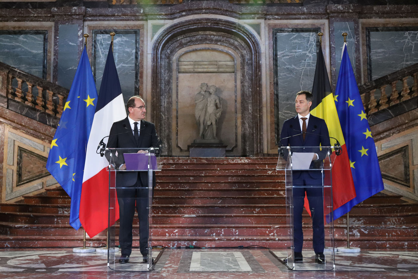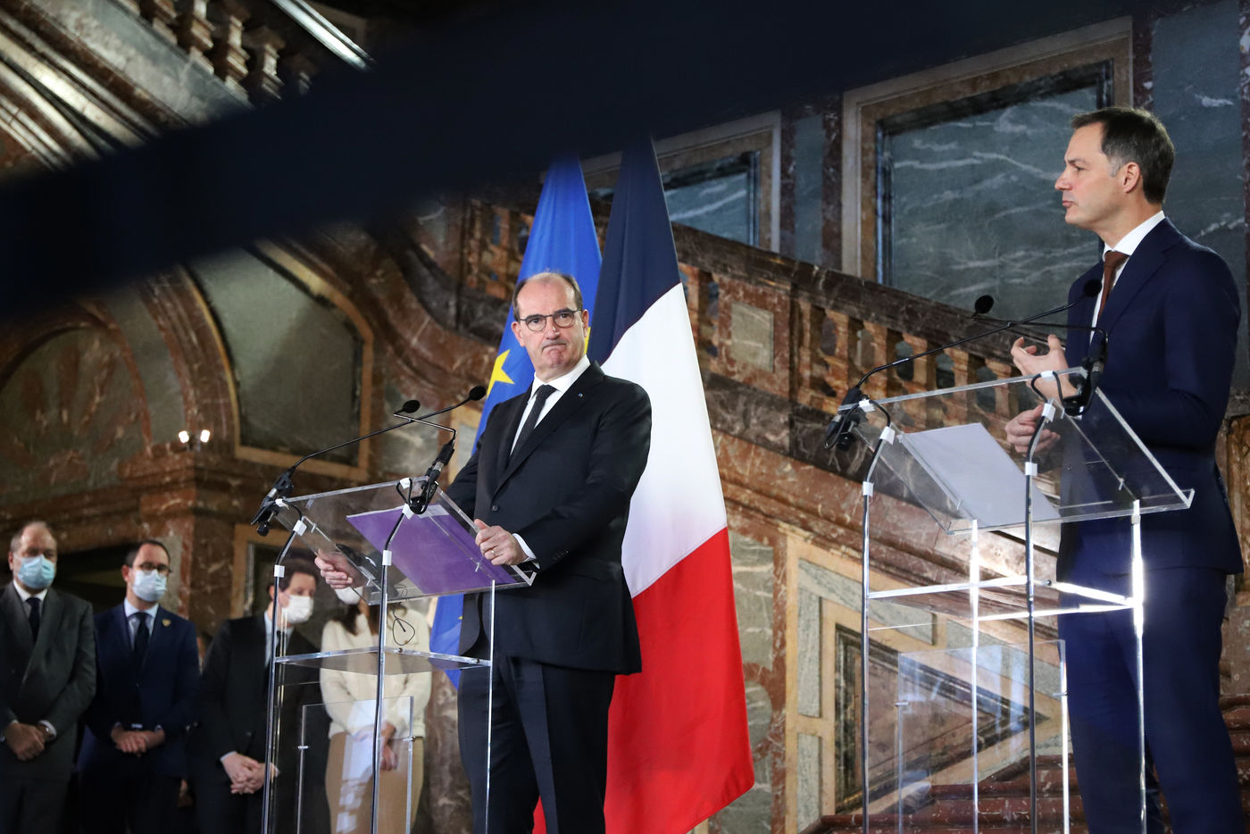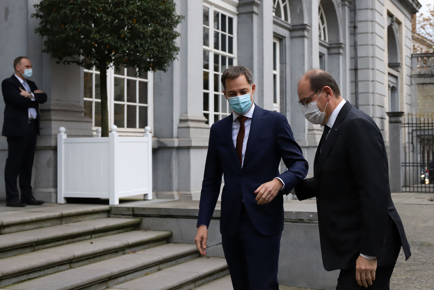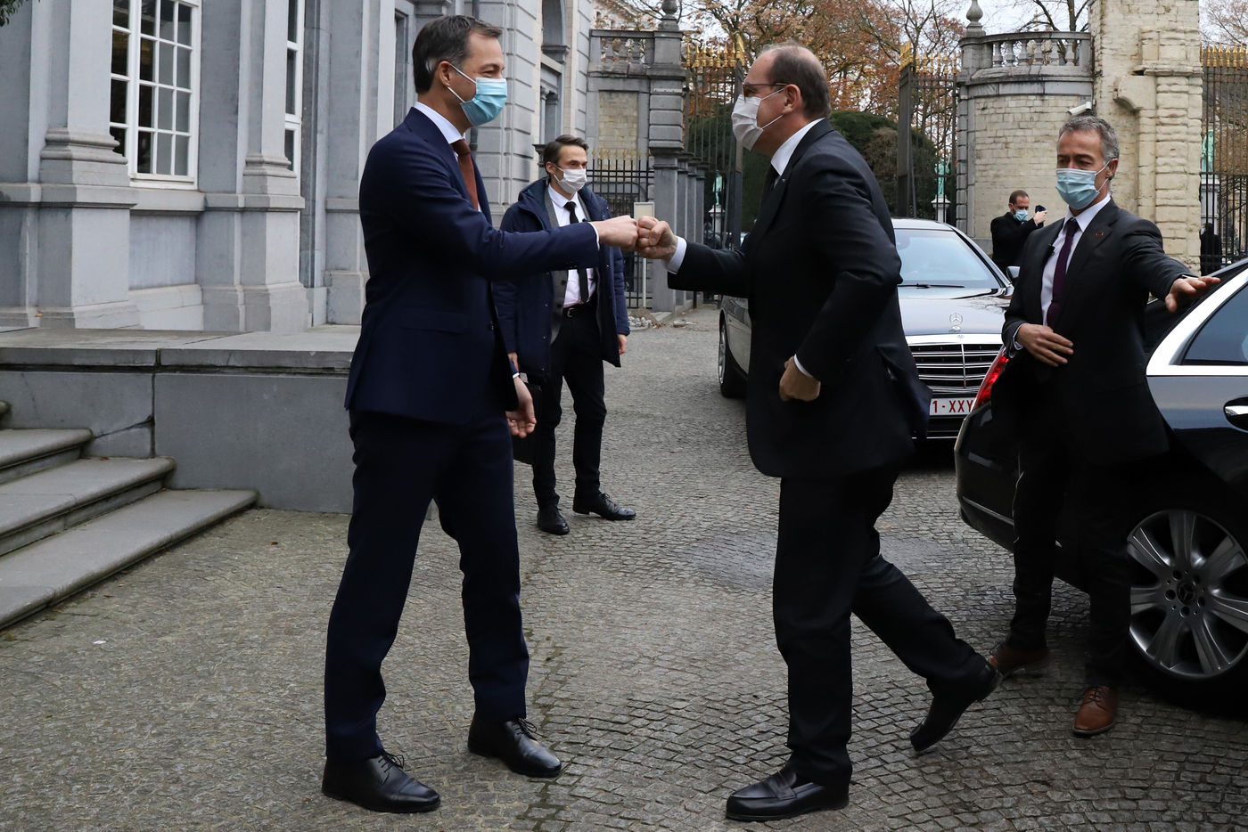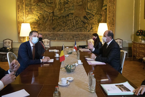 Le Premier ministre français Jean Castex, accompagné de plusieurs ministres, s'est rendu à Bruxelles le lundi 22 novembre 2021, dans le cadre des rencontres de ministres franco-belges dit du « Val Duchesse ». La délégation française a été reçue au Palais d'Egmont par le Premier Ministre belge Alexander De Croo et d'autres ministres. La rencontre avait pour objectif principal d?améliorer la coordination stratégique et opérationnelle en matière de sécurité et de lutte contre le terrorisme. A la fin du meeting, Jean Castex et Alexander De Croo ont participé à une cérémonie de commémoration devant le monument aux victimes des attentats terroristes de 2016 à Bruxelles.