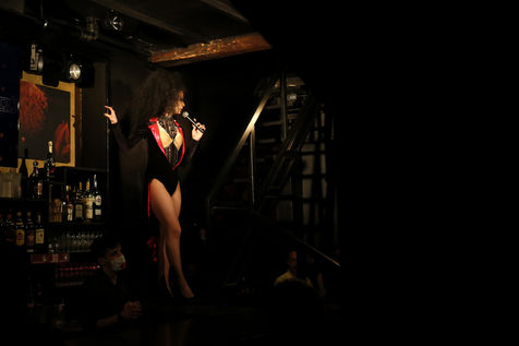 Belgium, Brussels, 2022/01/14. A drag queen performs a show in Chez Maman cabaret. Chez Maman, an iconic cabaret and one of the oldest ones in Brussels, has been closed for more than one year because of the Covid-19 pandemic and just reopened its doors.