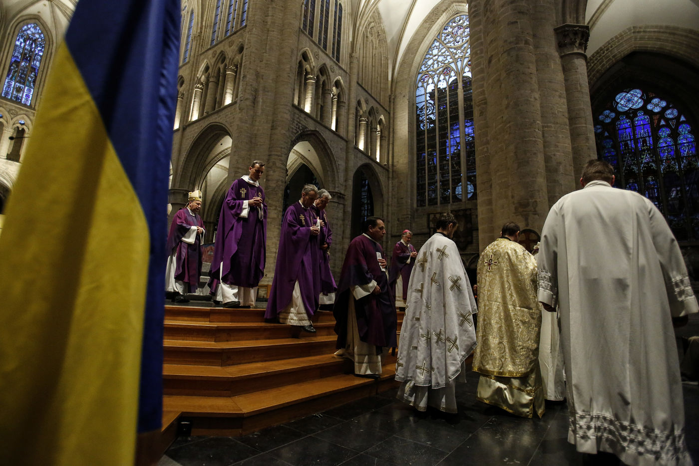 Messe pour la paix en Ukraine à la Cathedrale de Sts-Michel-et-Gudule à Bruxelles, Belgique, 13 Mars 2022.