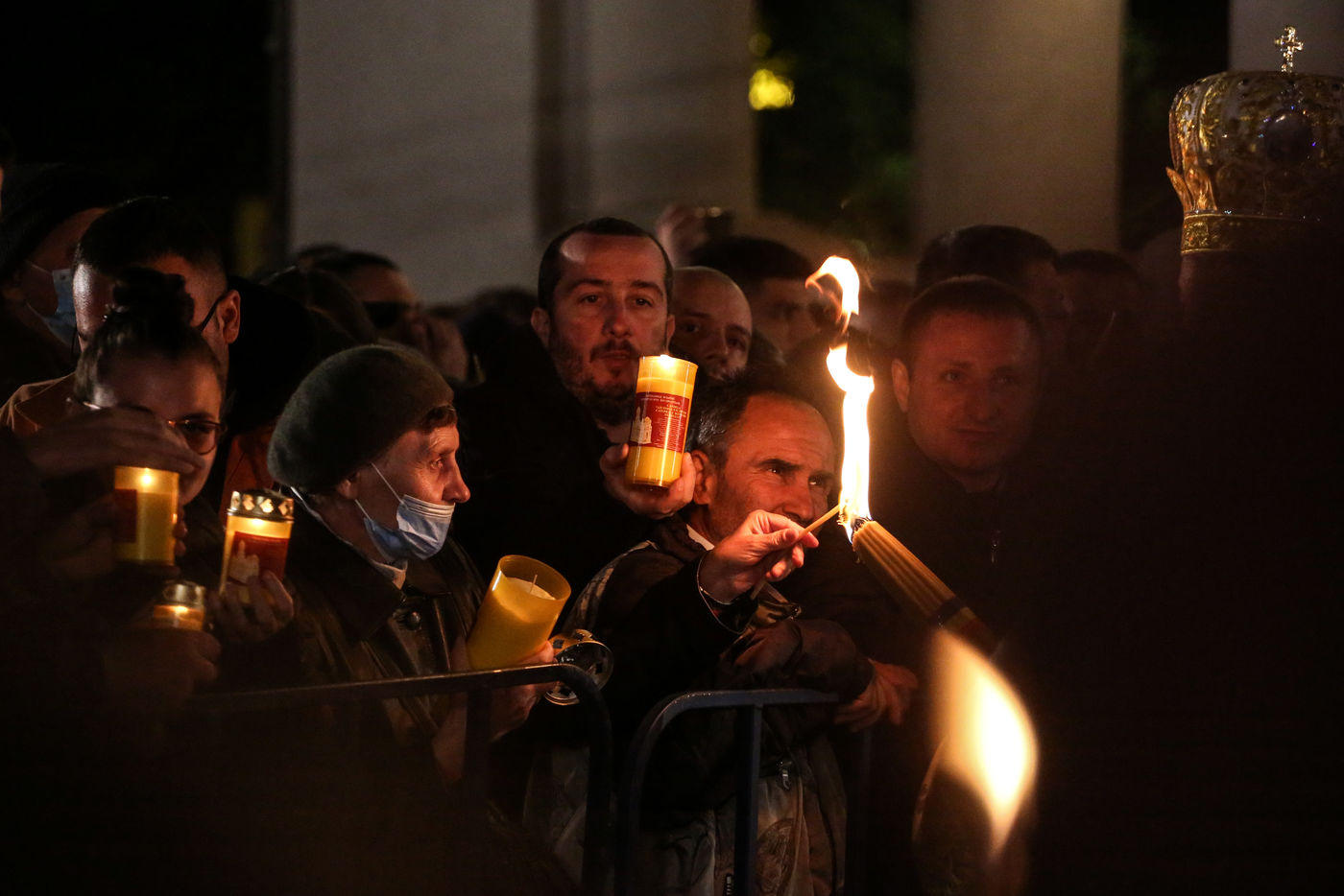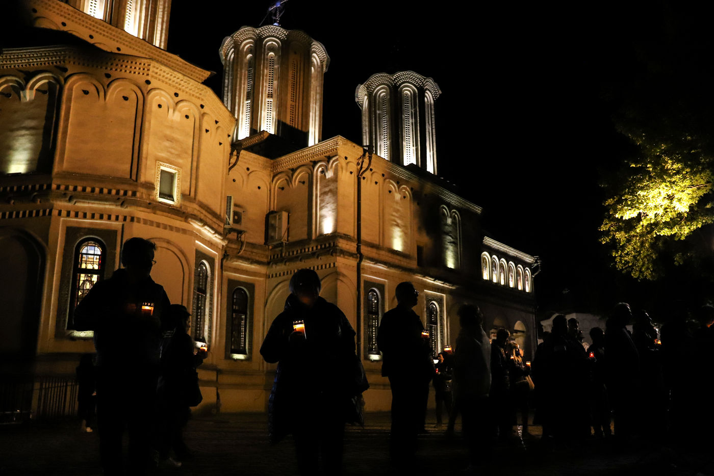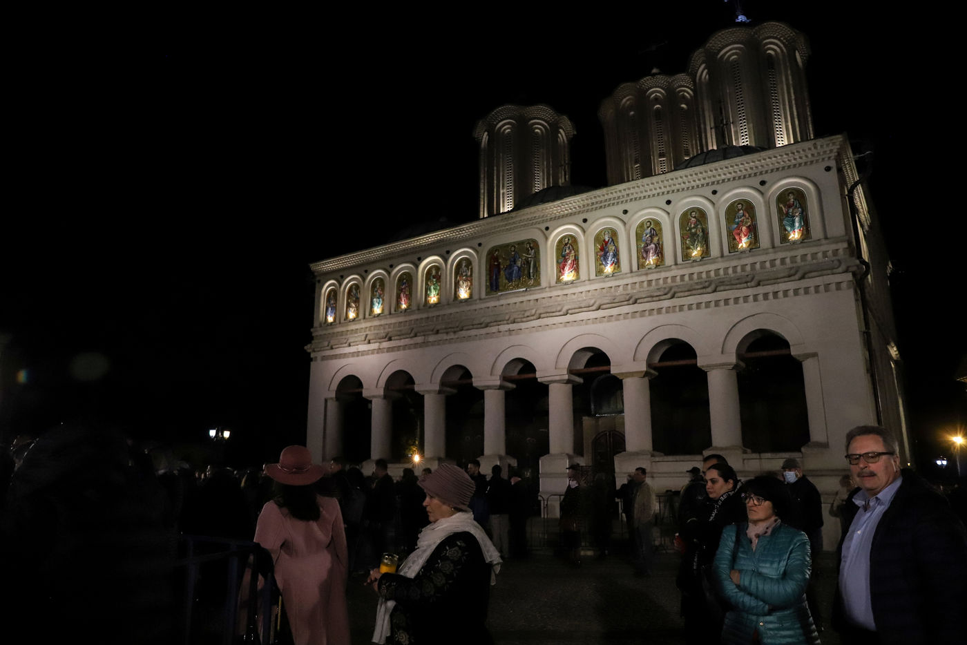 Bucharest, Romania, 2022/04/24. Celebration of Orthodox Easter at the Patriarchy Hill on the night between Saturday and Easter Sunday.