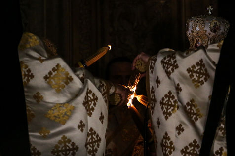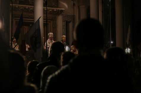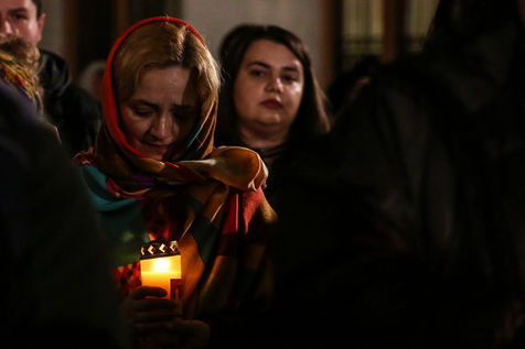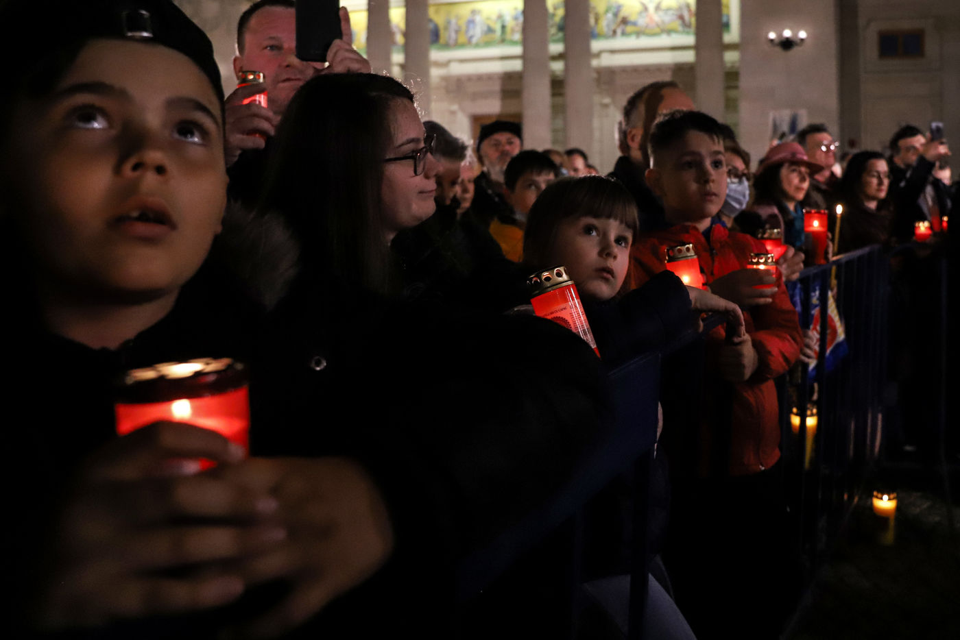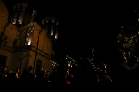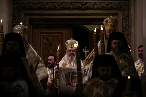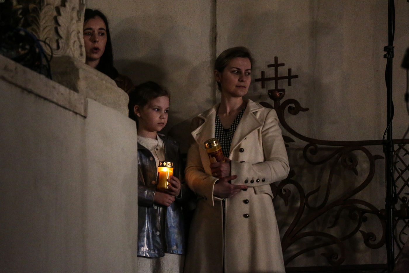 Bucharest, Romania, 2022/04/24. Celebration of Orthodox Easter at the Patriarchy Hill on the night between Saturday and Easter Sunday.