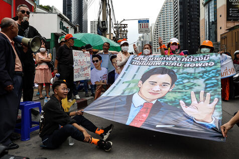 Thailand, Bangkok, 2023/08/02. Demonstration in support of the Move Forward Party. At a press conference, the Pheu Thai party announced that the progressive Move Forward party which won the general elections in Thailand will no longer be part of the eight-party coalition to form a government.