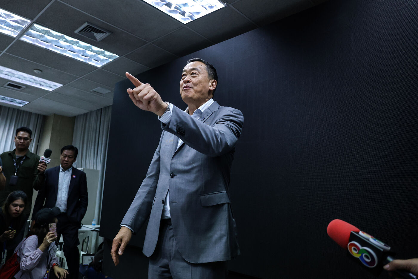 Thailand, Bangkok, 2023/08/23. Thailand's new Prime Minister Srettha Thavisin talks to the media after being appointed in his role at a royal ceremony at the Pheu Thai party headquarters.