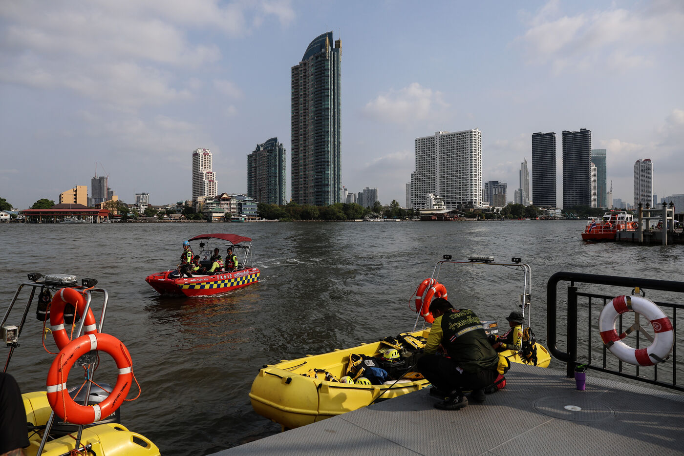 Thailande, Bangkok, 2024/03/08. 500 secouristes et 40 acteurs de crise participent à un exercice d'entraînement à l'émergence d'une fusillade de masse au centre commercial Asiatique The Riverfront. La fusillade de masse survenue au centre commercial Siam Paragon de Bangkok le 3 octobre 2023 a attiré l'attention sur le taux de possession d'armes en Thaïlande, l'un des plus élevés d'Asie.
