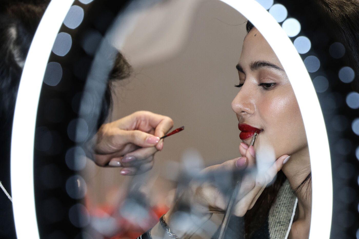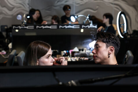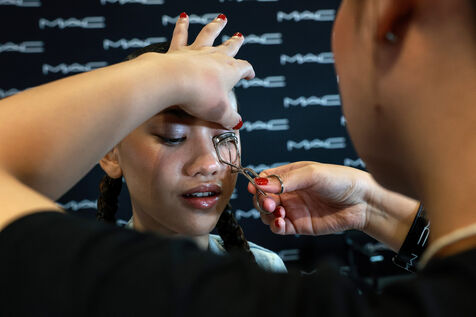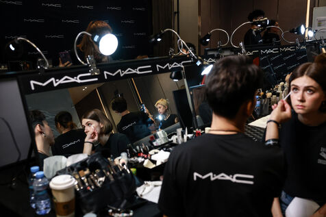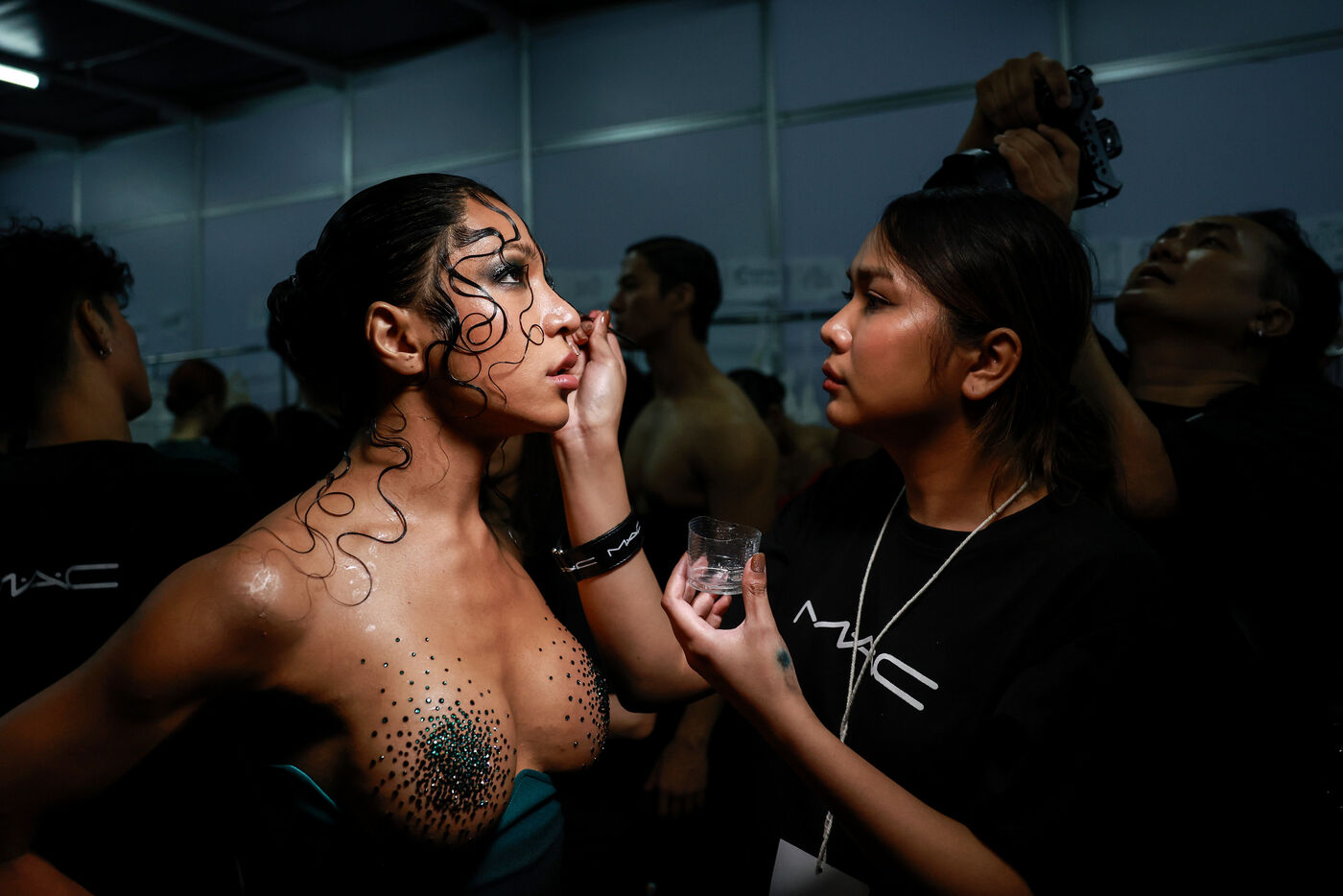 Models prepare backstage before Issue Thailand and Poem shows during the Siam Paragon Bangkok International Fashion Week 2024 at Siam Paragon mall in Bangkok, Thailand on October 4, 2024. Bangkok International Fashion Week 2024 is set under the concept “Envision the Future" and involves a collaboration with 15 prominent Thai fashion brands and leading international designers.