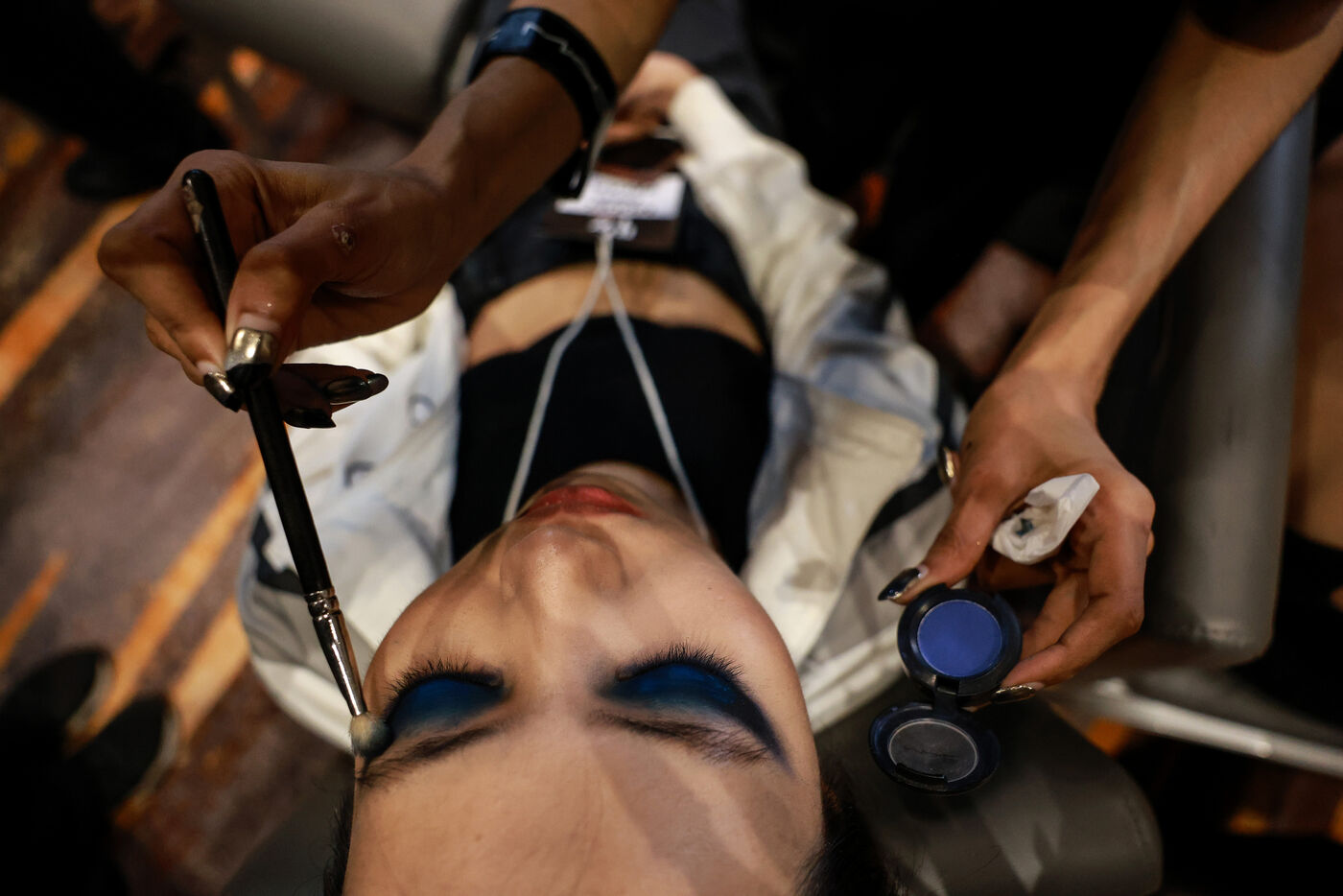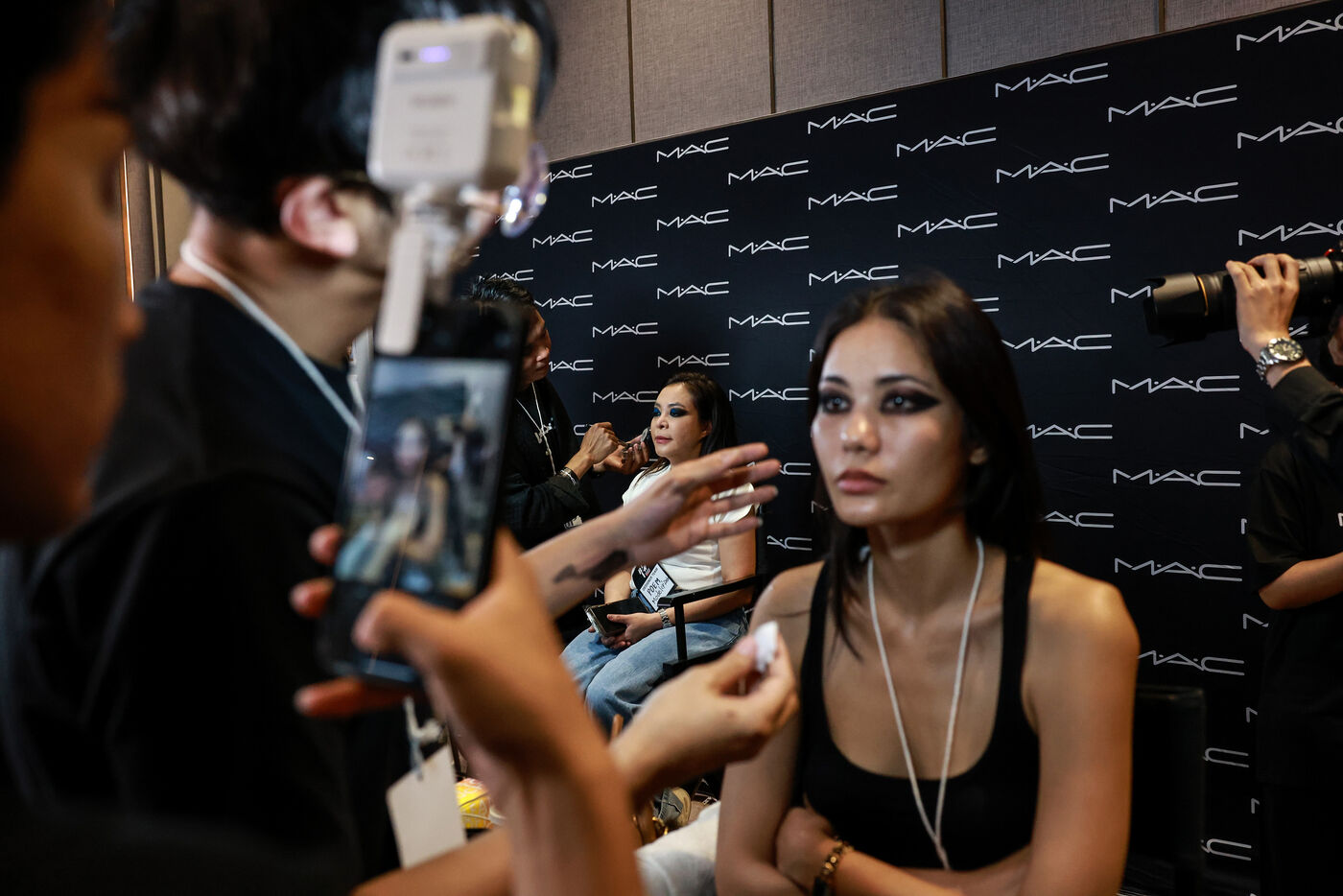 Des mannequins se préparent en backstage avant les défilés des marque Poem et Issue Thailand lors de la Siam Paragon Bangkok International Fashion Week 2024 au centre commercial Siam Paragon à Bangkok, en Thaïlande, le 4 octobre 2024. La Bangkok International Fashion Week 2024 se déroule sous le concept « Envision the Future » et implique une collaboration avec 15 grandes marques de mode thaïlandaises et des designers internationaux de premier plan.