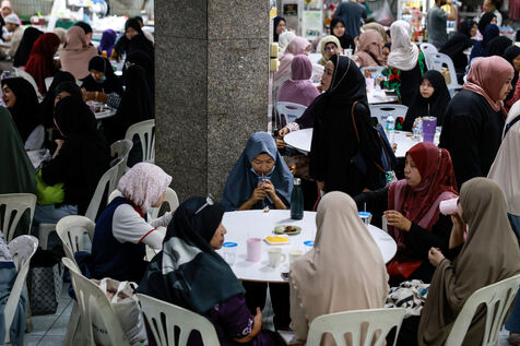 Muslim devotees pray on the first day of Ramadan in Bangkok, Thailand on March 2, 2025.