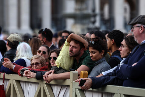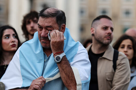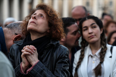 Faithful attend a rosary in homage to Pope Francis following his death in Saint Peter's Square in Vatican City, Vatican on April 21, 2025. The Vatican announced that Pope Francis, 88, died on April 21st in the morning.