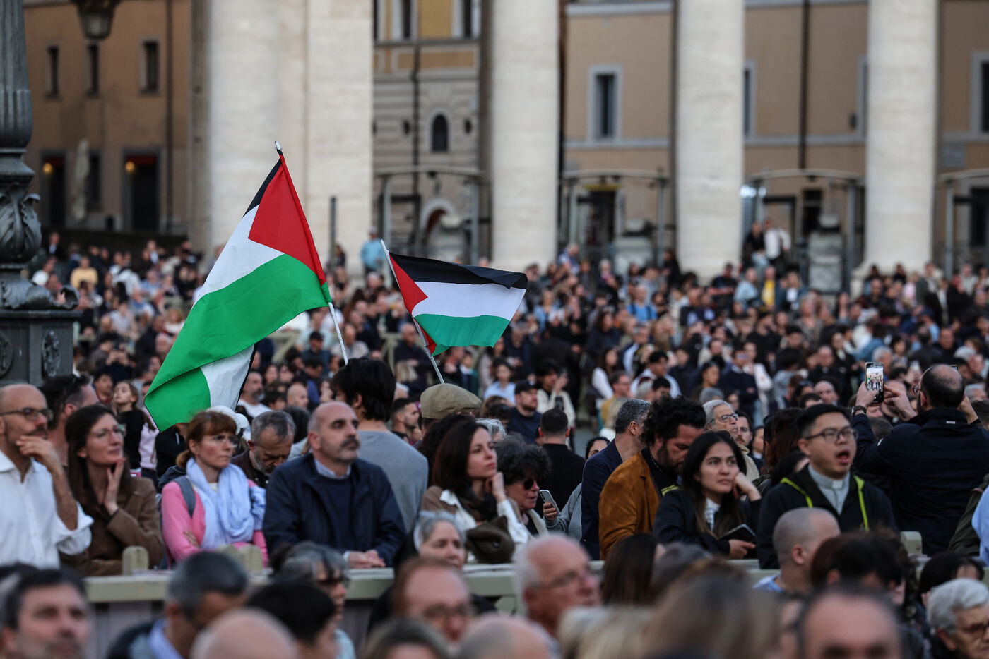 Des fidèles participent à un chapelet en hommage au pape François après son décès sur la place Saint-Pierre, au Vatican, le 21 avril 2025. Le Vatican a annoncé que le pape François, 88 ans, est décédé le 21 avril au matin.