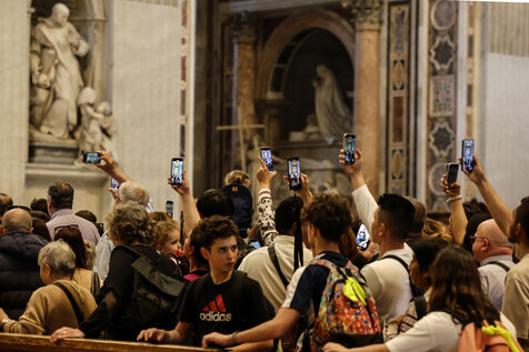 Le cercueil du défunt pape François est transporté à la basilique Saint-Pierre après sa mort, au Vatican, le 23 avril 2025. Le Vatican a annoncé que le pape François, 88 ans, est décédé le 21 avril au matin.