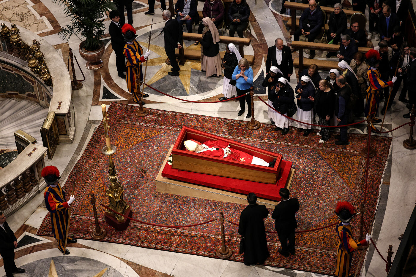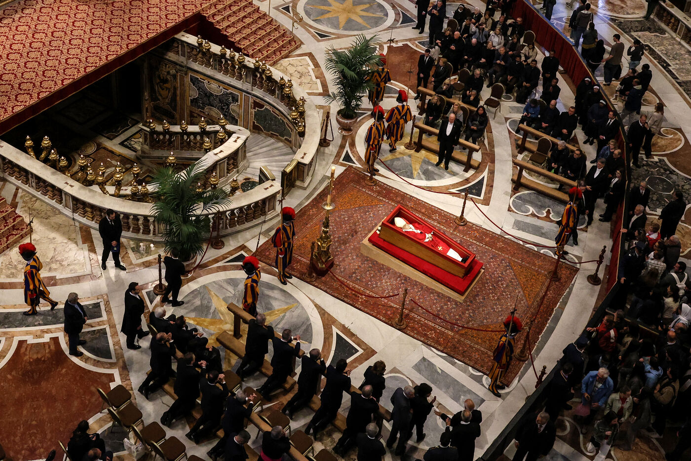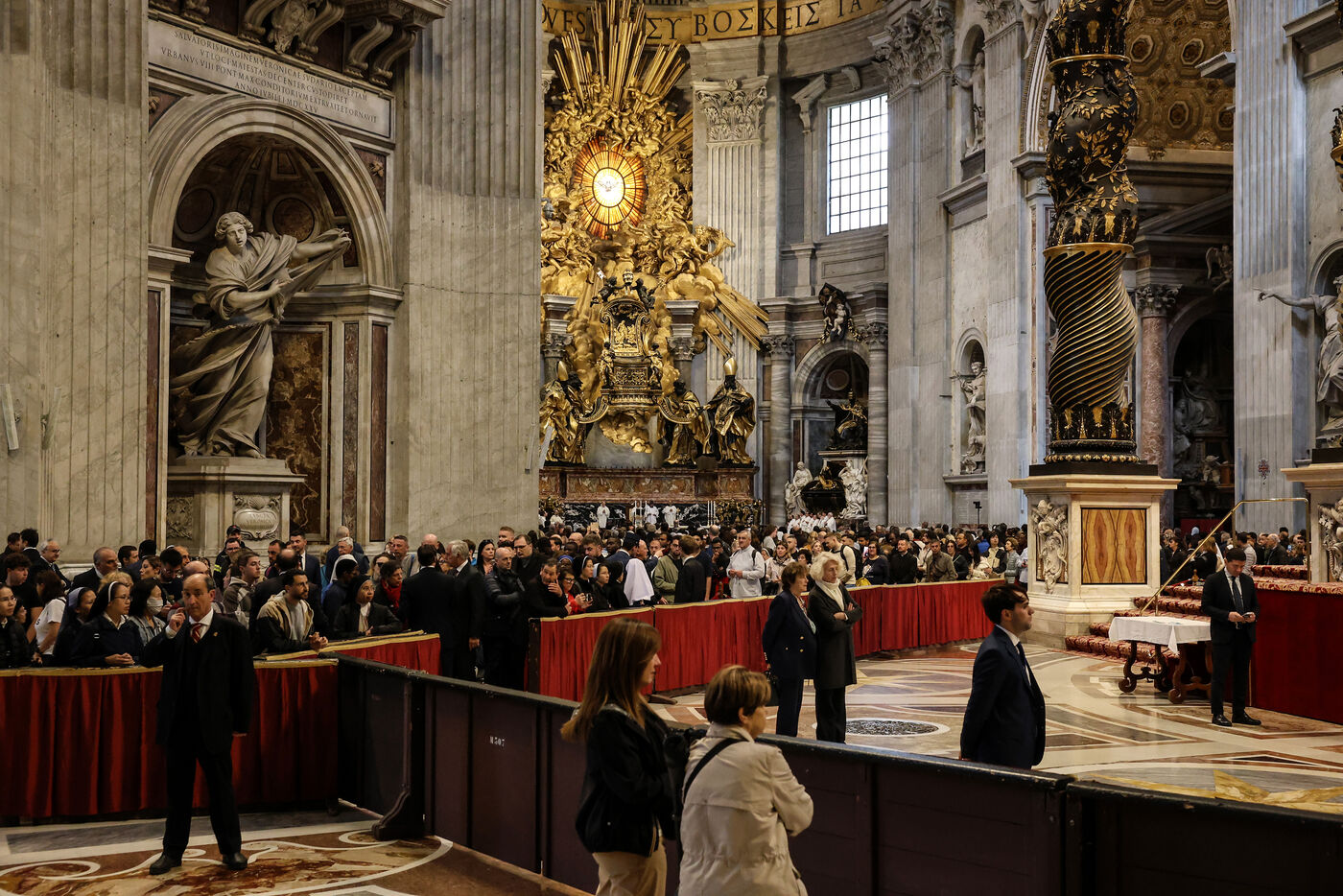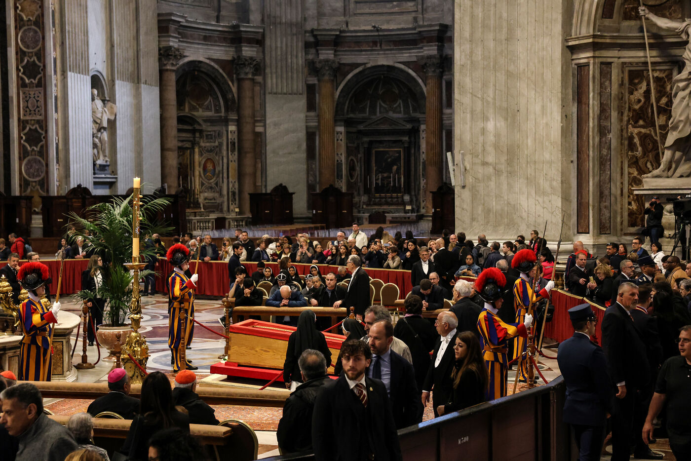 Les fidèles rendent hommage au corps du pape François à la basilique Saint-Pierre, après la mort du pape, au Vatican, le 24 avril 2025.