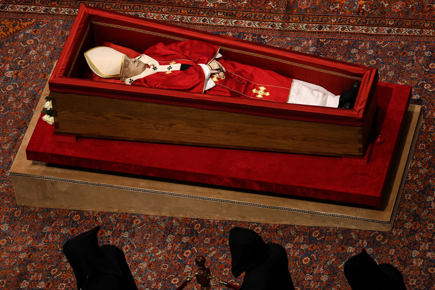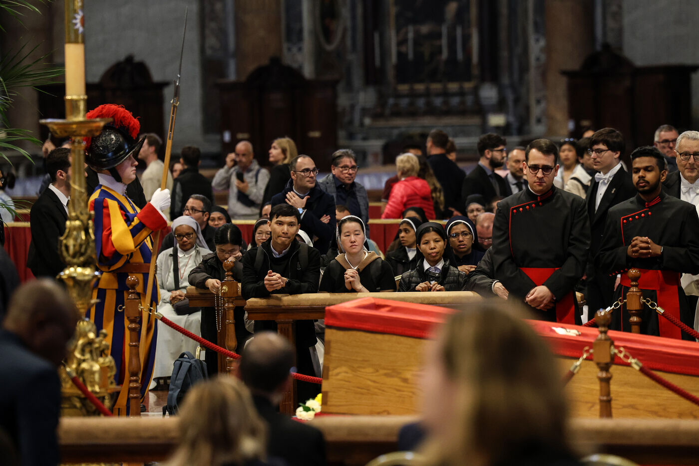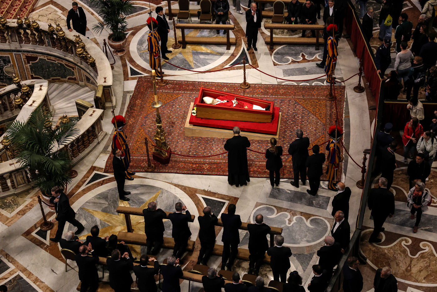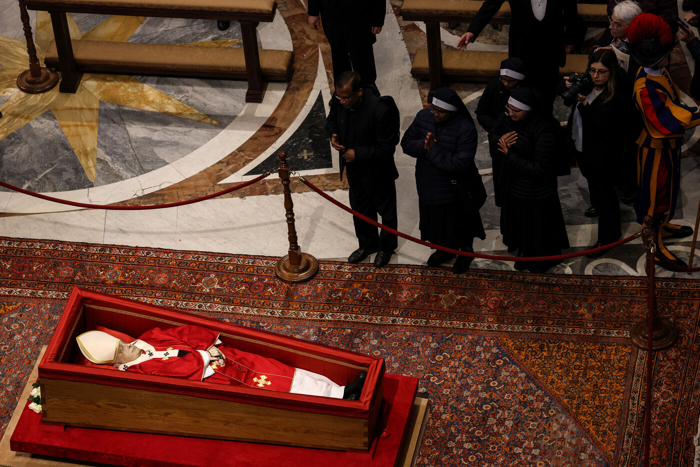 Les fidèles rendent hommage au corps du pape François à la basilique Saint-Pierre, après la mort du pape, au Vatican, le 24 avril 2025.