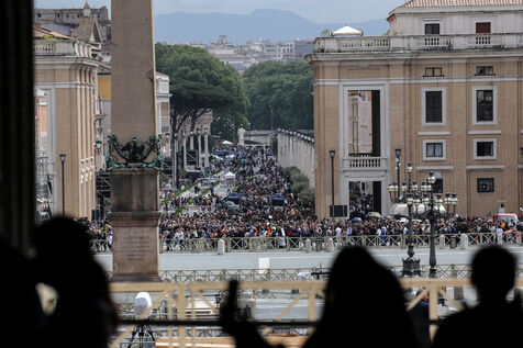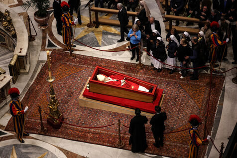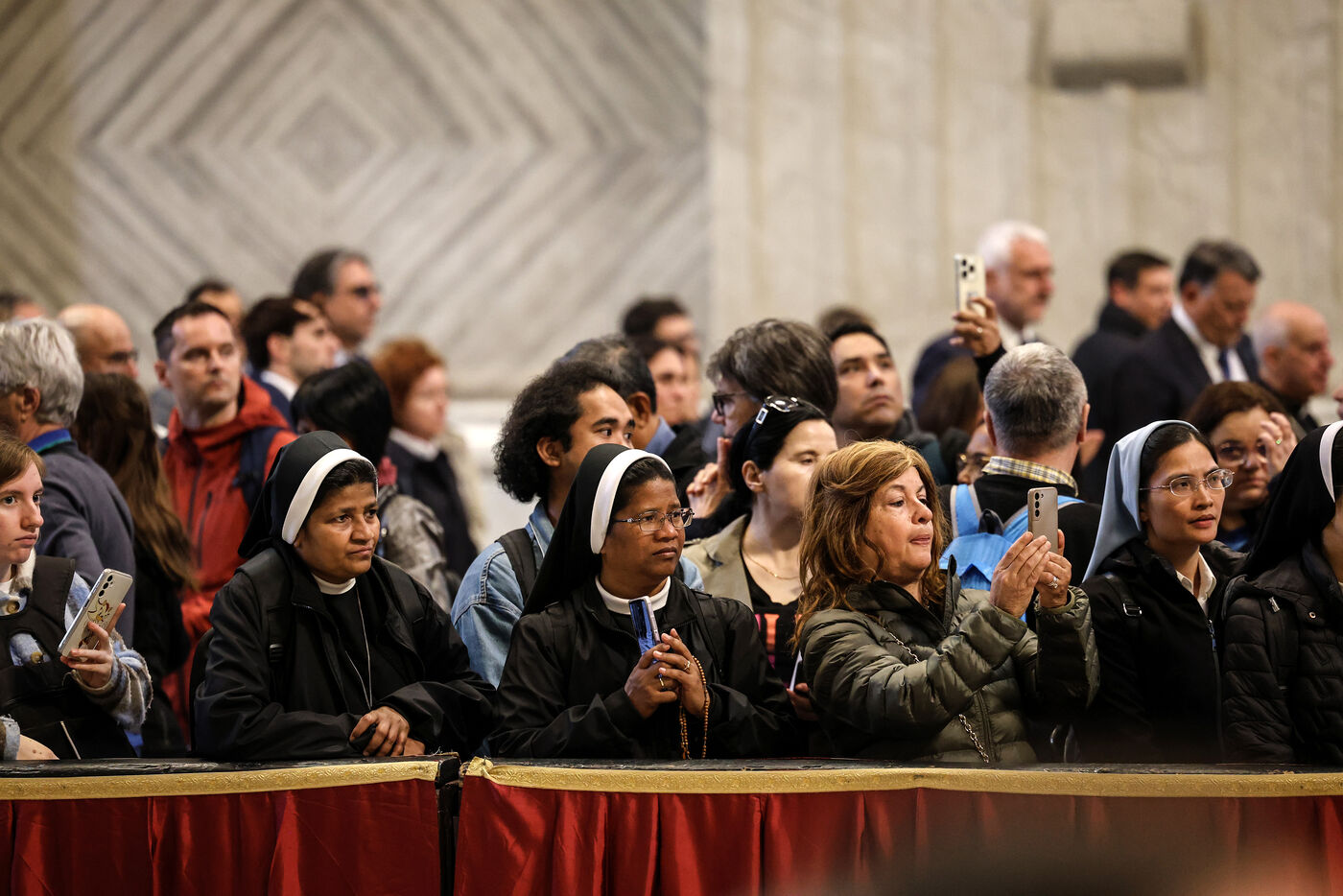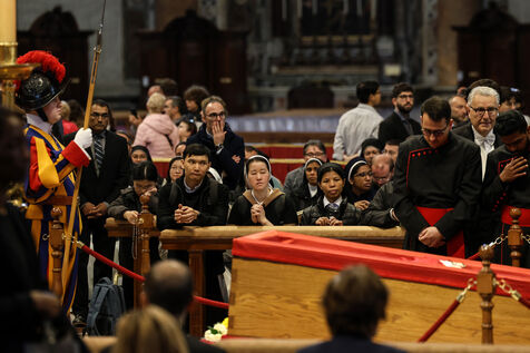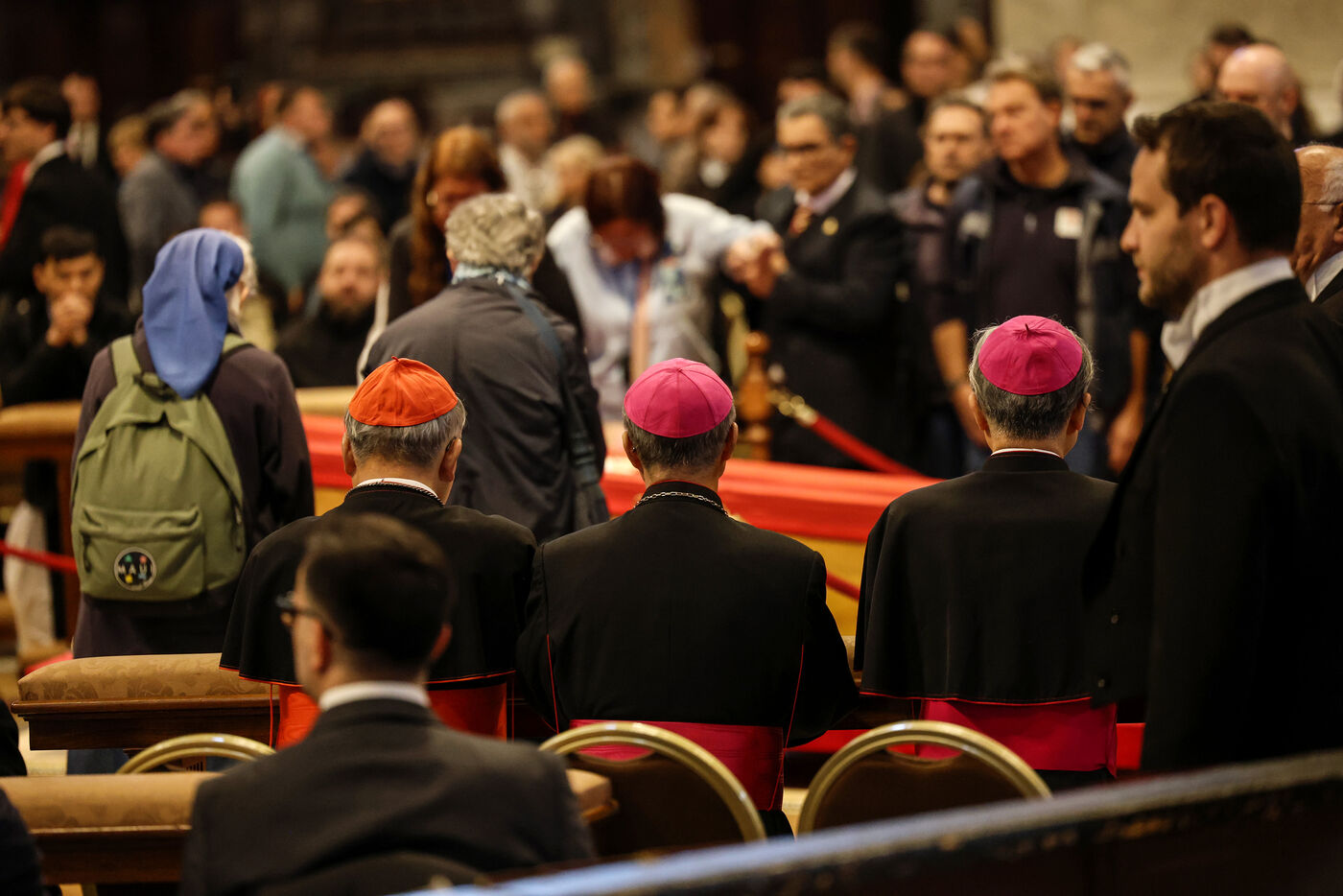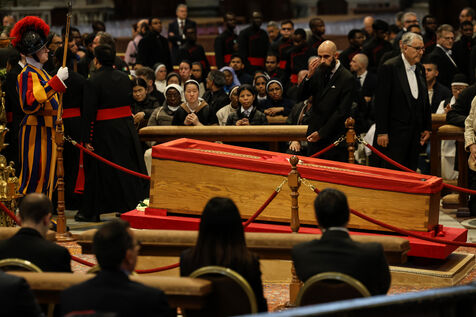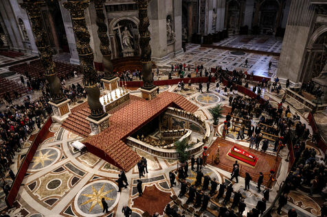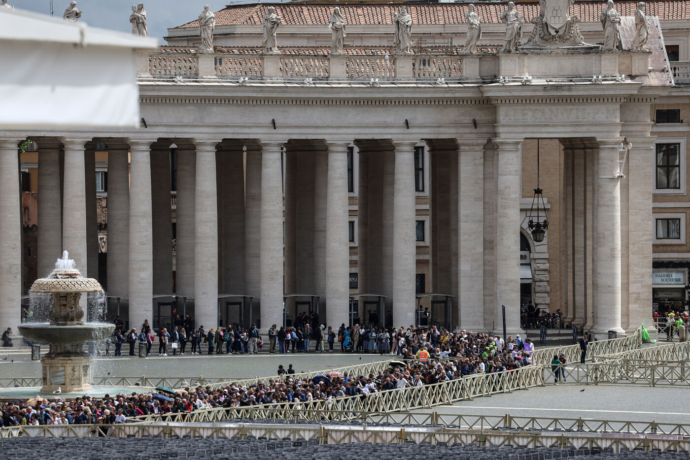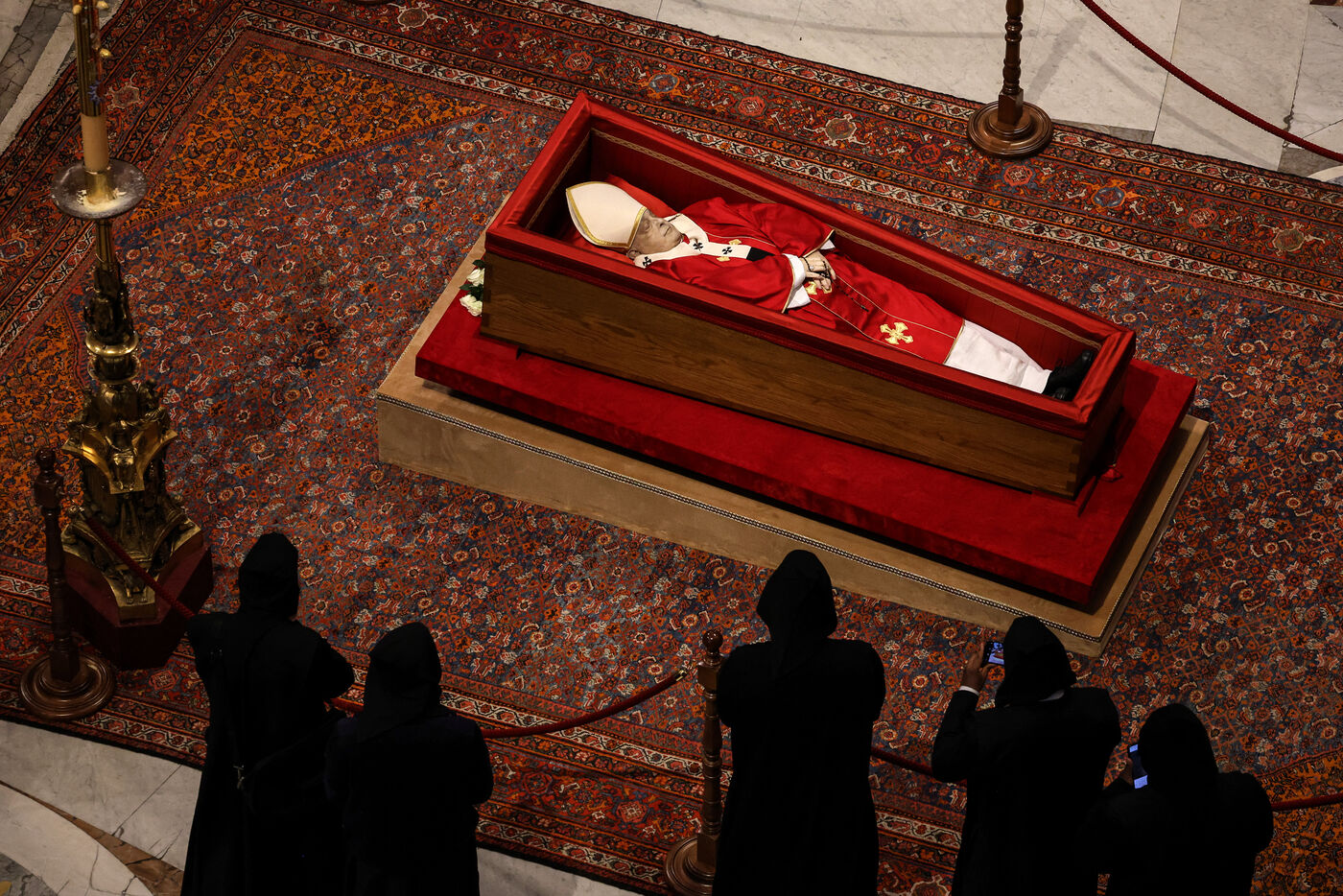 Les fidèles rendent hommage au corps du pape François à la basilique Saint-Pierre, après la mort du pape, au Vatican, le 24 avril 2025.