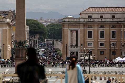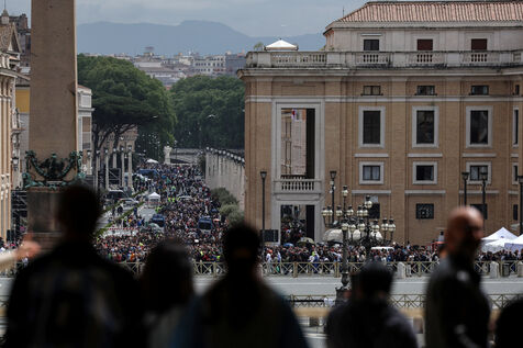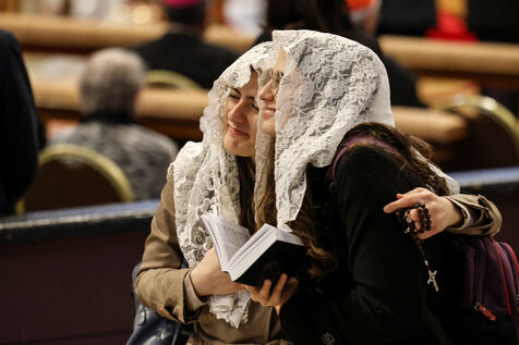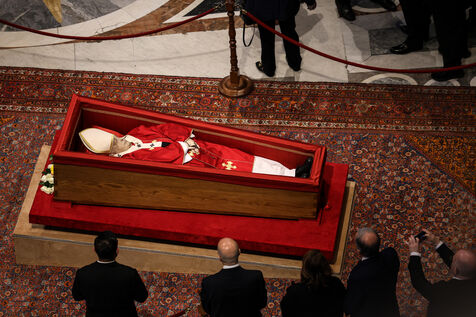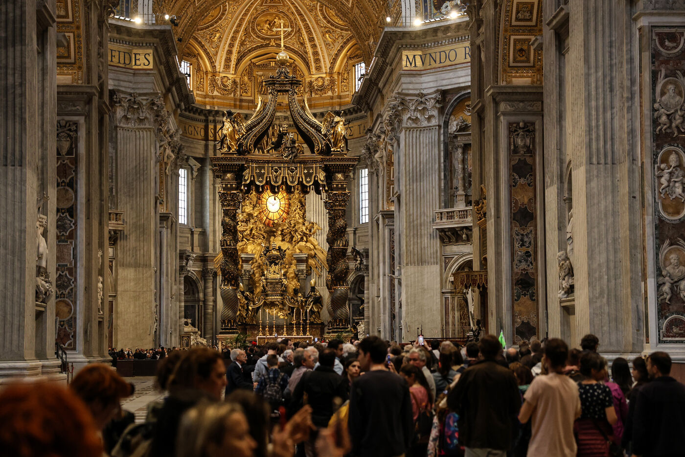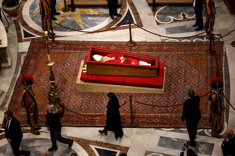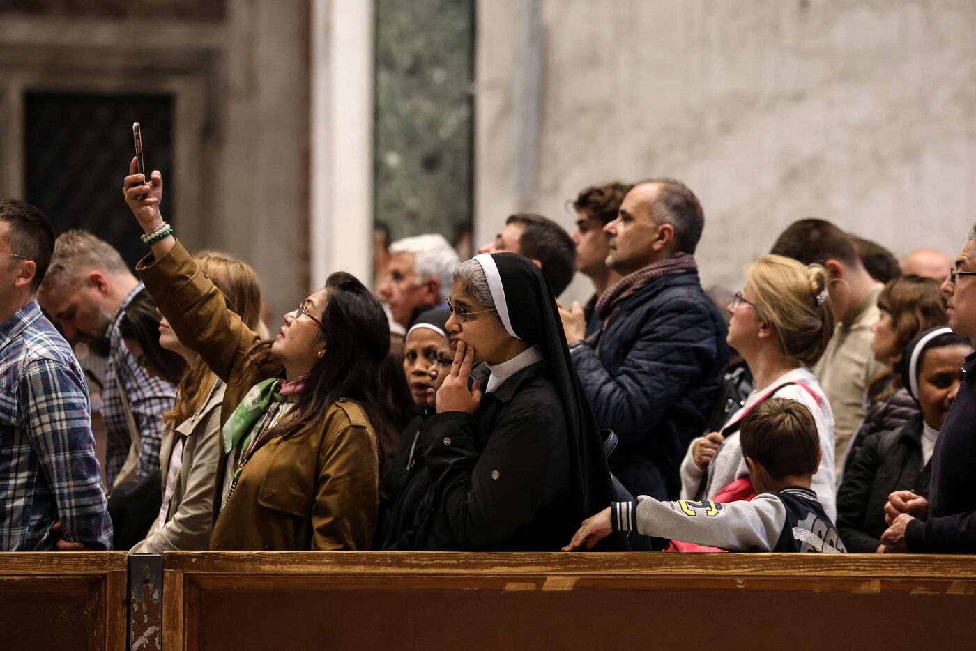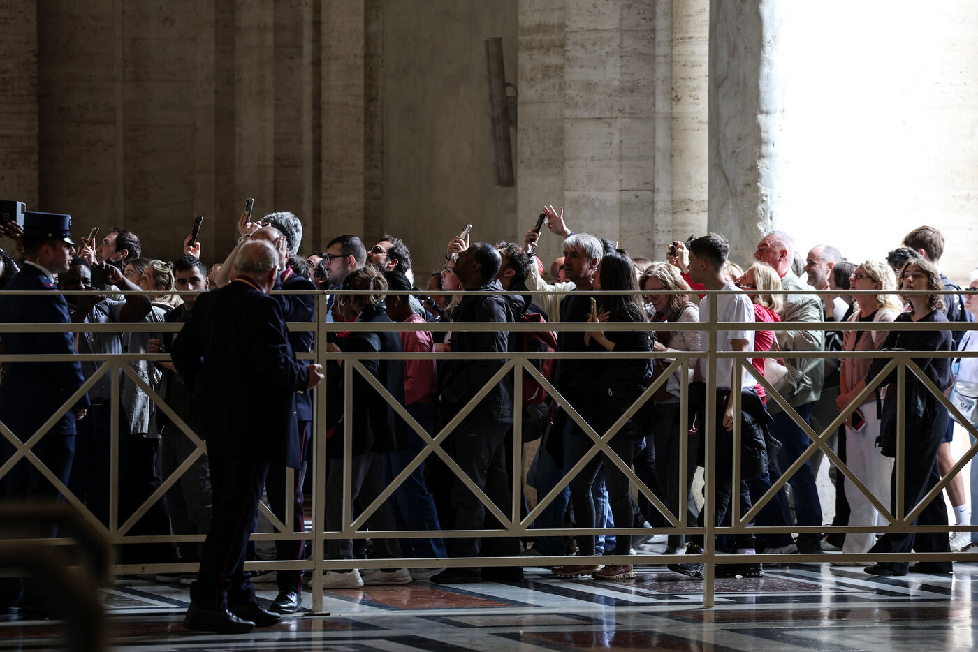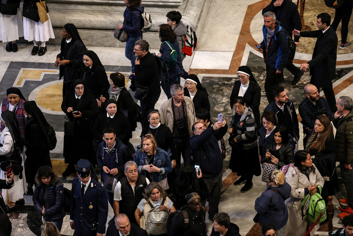 Devotees pay their respects to Pope Francis's body at St Peter's Basilica, following the Pope's death, in the Vatican on April 24, 2025.
