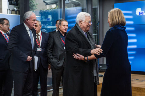 Mahmoud Abbas, president of the Palestinian authority is visiting the Euripean Council in Brussels.
