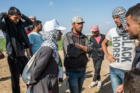 Etaf Wadi, alias Oum Wissam est une femme de 55 ans et mère de 8 enfants. Lorsqu'elle a entendu parler du mouvement de «La grande marche du retour» qui consiste à l'élaboration de camps et de sit-in à la frontière entre Israël et Gaza pour le retour des réfugiés palestiniens, elle a décidé qu'elle y participerait activement. Oum Wissam est originaire du village de Beit Derass, situé à 30km de l'est de Gaza. Comme beaucoup de Palestiniens réfugiés à Gaza, elle espère qu'un jour, elle et/ou ses enfants retourneront dans leurs terres d'origine. "