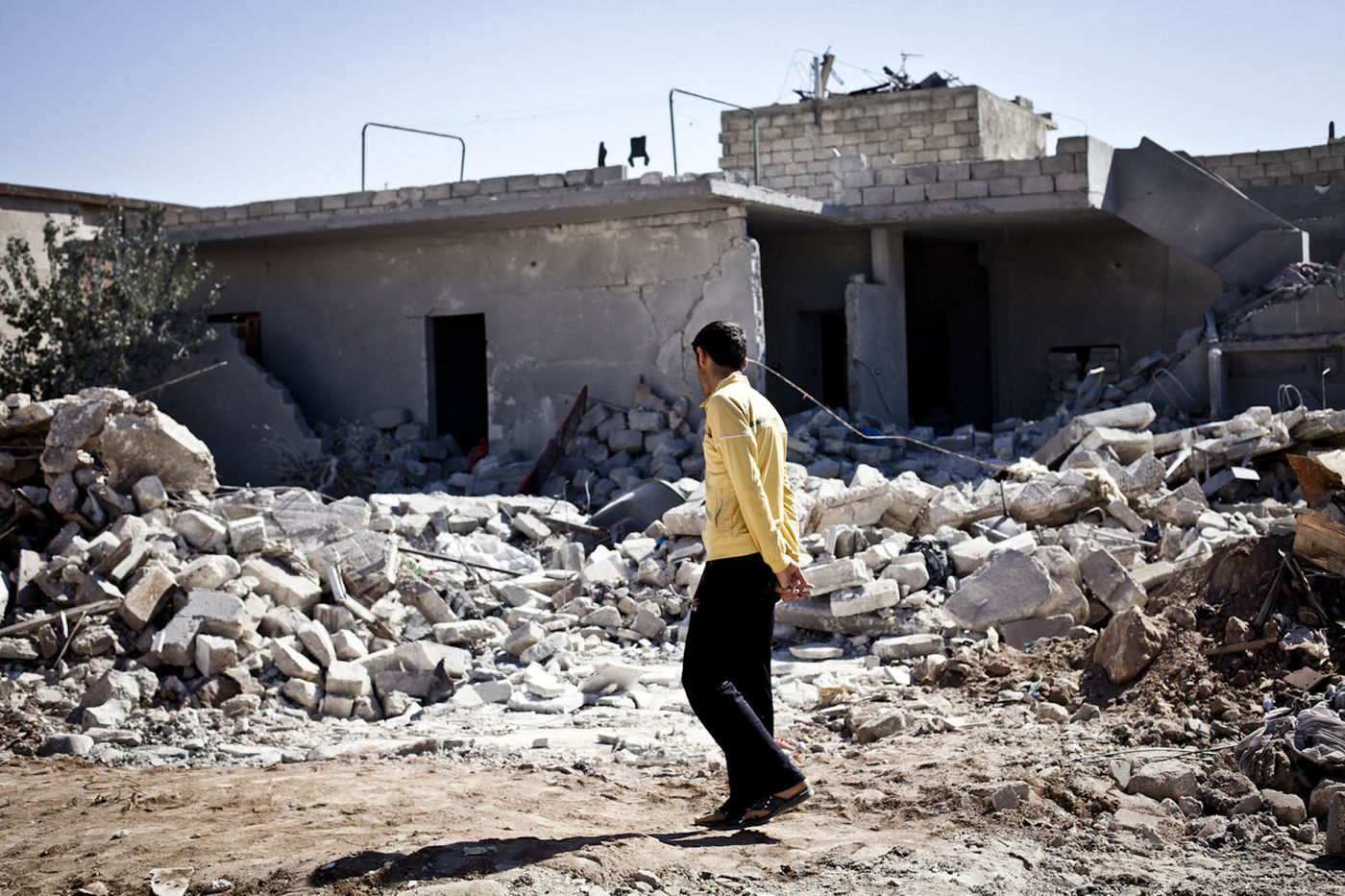 Il y a maintenant plus de deux ans que la révolution syrienne a commencé. C'est aujourd'hui une guerre civile dont la population est la première victime. A Alep et dans les villages alentour, la vie continue malgré la menace quotidienne des bombardements aériens du régime. Alors que l'électricité, l'eau potable et le pain sont rationnés, les marchés restent ouverts et des écoles improvisées dans les mosquées ont été créées par des conseils civils comme substitution aux nombreuses écoles bombardées dans la région. Sur le front, les membres de l’Armée Syrienne Libre travaillent à la libération des dernières zones tenues par l’armée régulière avant de pouvoir se déplacer vers Damas. Cette série d’images, prises entre octobre 2012 et mars 2013, vise à traduire le quotidien des Syriens sous la menace des bombes.