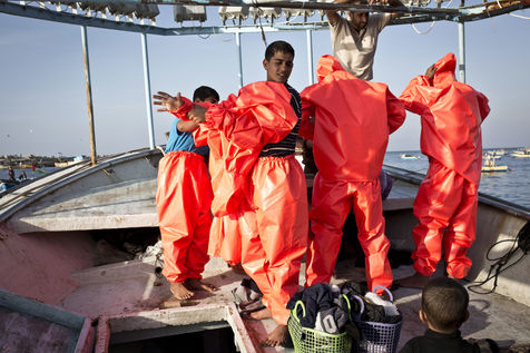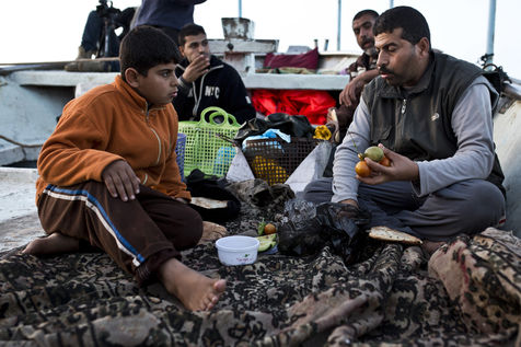Si nous pourrions aller jusqu'à 15 milles, nous aurions beaucoup plus de poissons et de meilleures prises» dit Majed. Un jour, Majed est allé un peu plus loin que 6 miles et a rencontré un bateau israélien. Les gardes sur le bateau lui ont demandé de sauter dans la mer et directement détruit son bateau. Après cela, Majed a séjourné un mois dans une prison israélienne, proche de la frontière avec Gaza.