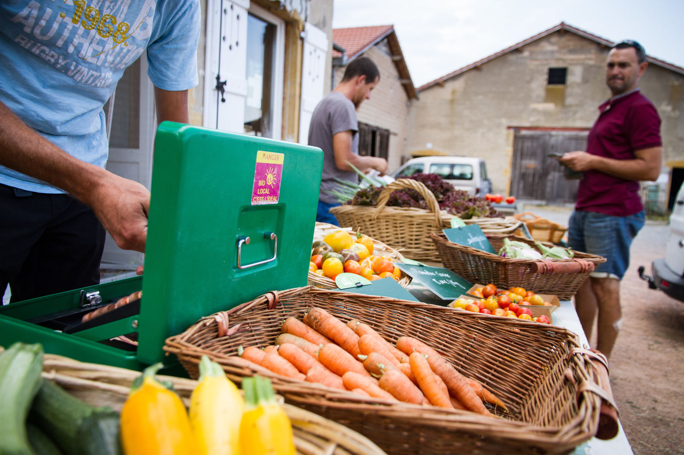 Malek Issaad, 38 ans, après des formations et une activité de salarié en maraîchage, poursuit cette activité en test pour acquérir davantage de compétences et essayer de nouvelles techniques avant de s'installer à son compte. Ils font tous les deux de la vente directe à la ferme et sur les marchés locaux.