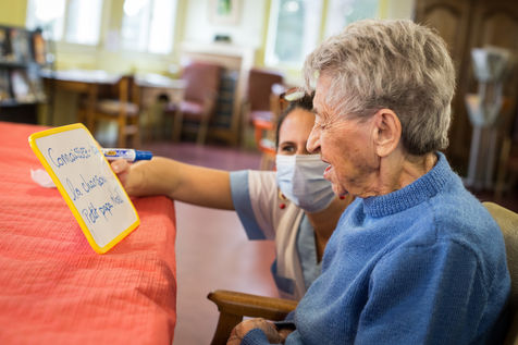 Visits from families are limited, respecting measures of distancing. Some visits are organised virtually in the residents' rooms with pads.