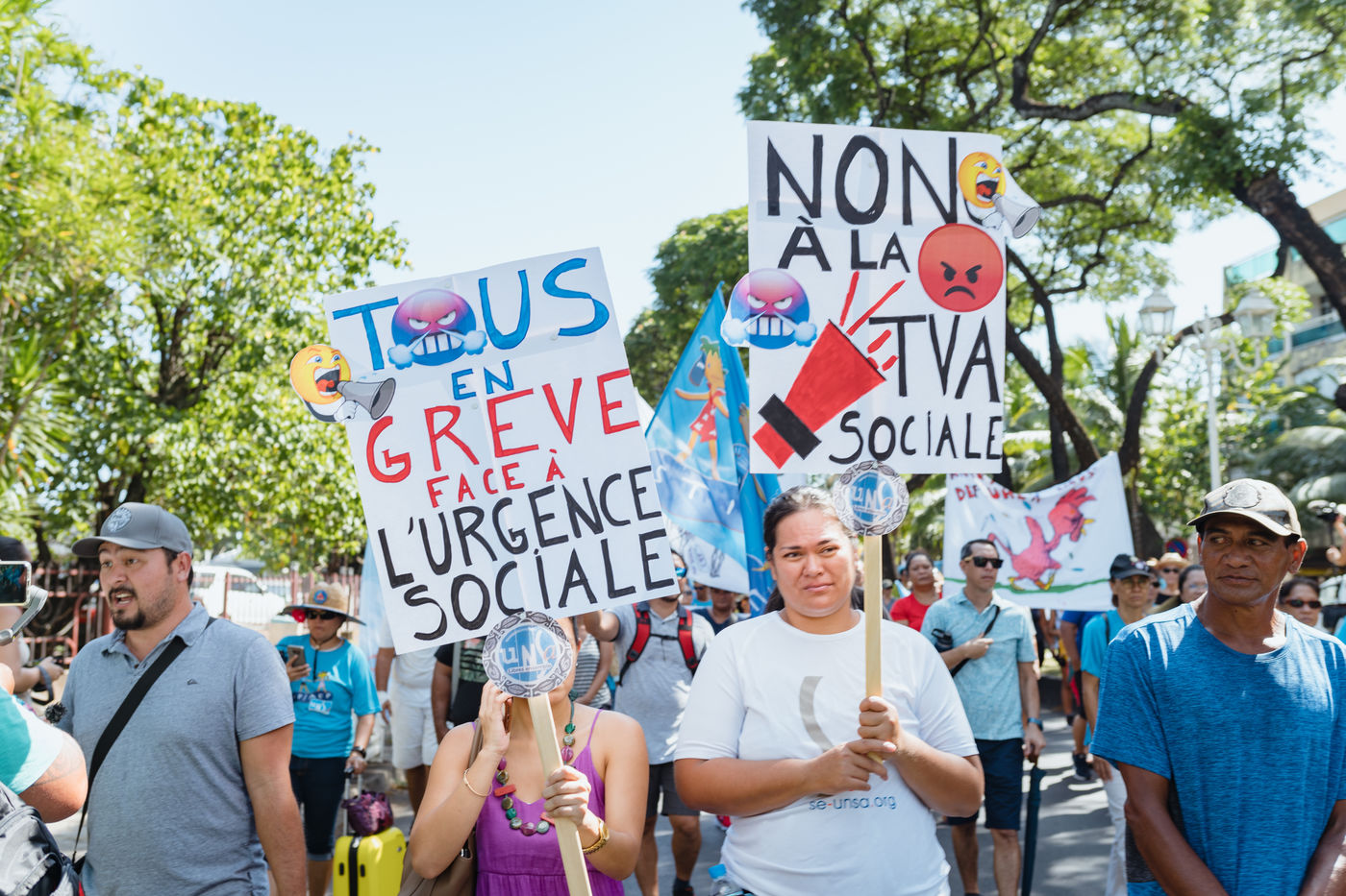 Le 23 décembre 2021, l'Assemblee de la Polynésie française a voté une loi du pays portant réforme de la gouvernance de la Protection sociale généralisée (PSG) et instaurant une TVA sociale d un taux de 1.5% sur tous les produits et services à partir du 1er avril 2022. L'intersyndicale A TIA I MUA (organisation affiliée à la CFDT), O OE TO OE RIMA (organisation associée à la CGT) et UNSA, a lancé une journee de grève généralisée le jeudi 17 mars avec pour principale revendication le retrait de cette nouvelle taxe qui risque d'impacter le pouvoir d'achat des ménages.