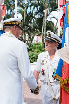 Cérémonie de prise de poste d'Eric Spitz, nouveau Haut-commissaire de la République française en Polynésie française, avec dépôt de gerbe au monument aux morts et salutation de différents représentants du Pays et de l'État, de la Légion d'honneur, des Anciens Combattants... M. Spitz a ensuite donné un discours où il affirme aimer la Polynésie, territoire où il a déjà travaillé auparavant en tant que secrétaire général du Haut-Commissariat, et faire de la transition énergétique son plus grand chantier.