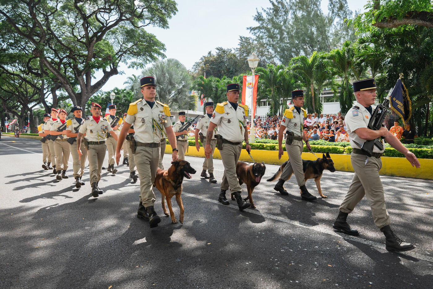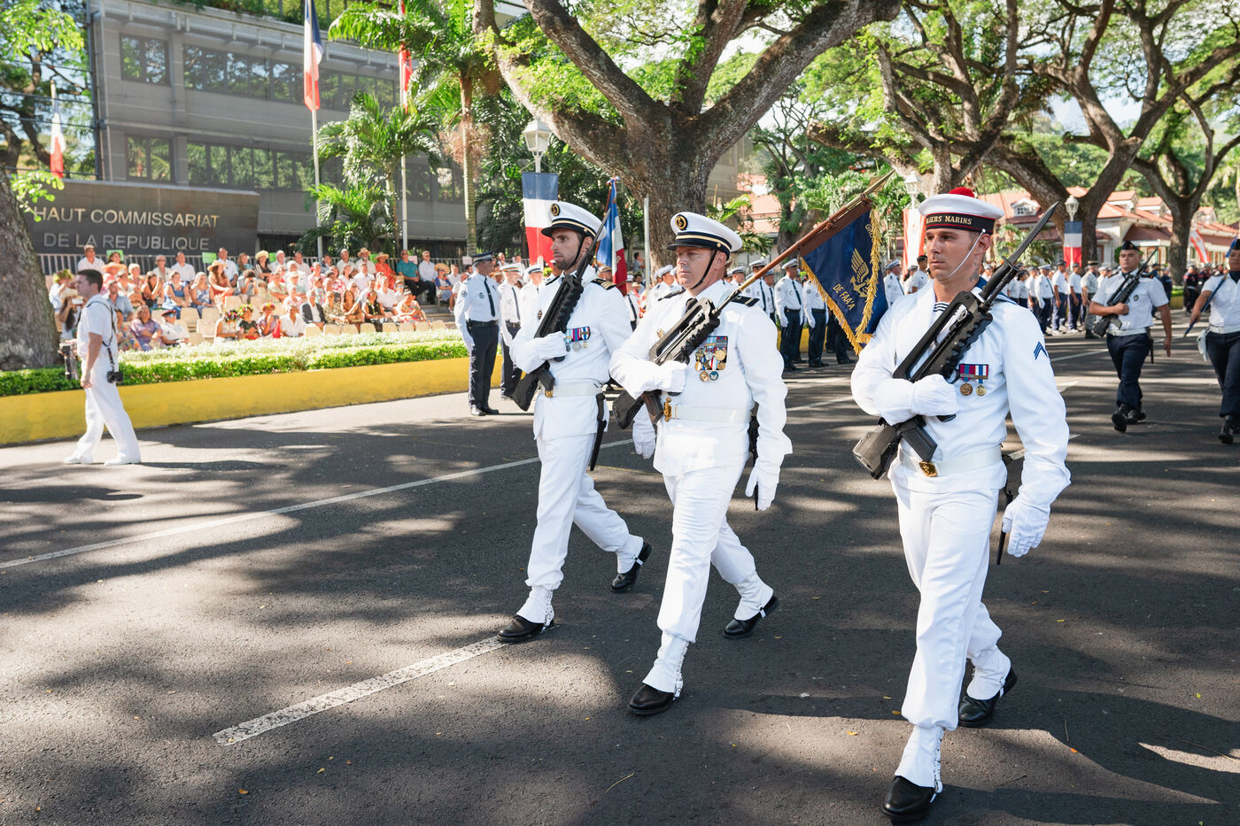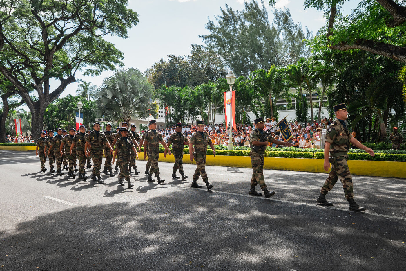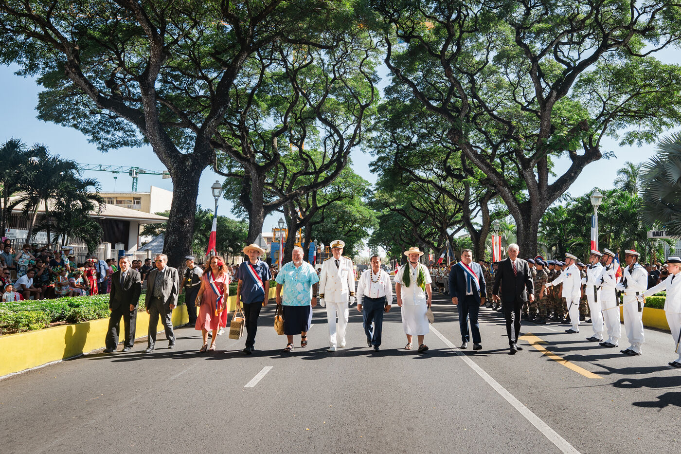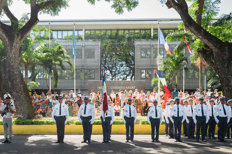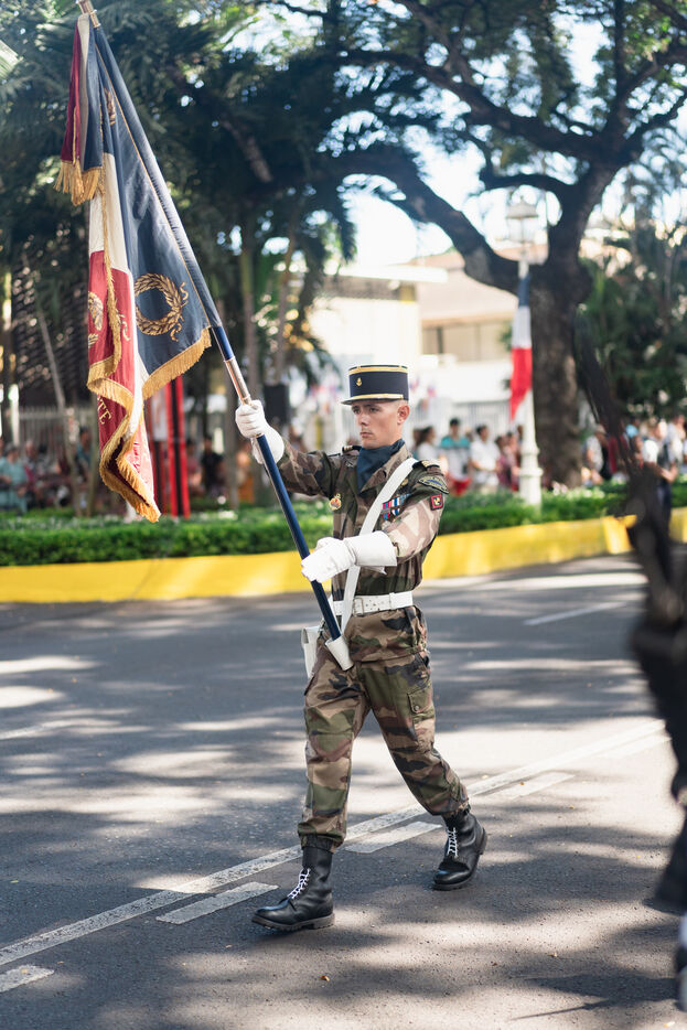 Le défilé du 14 juillet s'est tenu sur l'avenue Pouvanaa a Oopa, entre le Haut-Commissariat de la République française en Polynésie française et le Monument aux morts. Les forces armées françaises présentes sur le territoire ainsi qu'une delegation de la marine nationale péruvienne, en escale à Papeete, ont défilé devant les officiels présents : le Haut-Commissaire Eric Spitz, le président de la Polynésie française Moetai Brotherson, le président de l'Assemblée de la Polynésie francaise Antony Geros, les députés à l'Assemblée nationale Steve Chailloux, Tematai Le Gayic et Mereana Reid Arbelot, et les représentants du CESEC Tu Yan et Eugène Sommers.