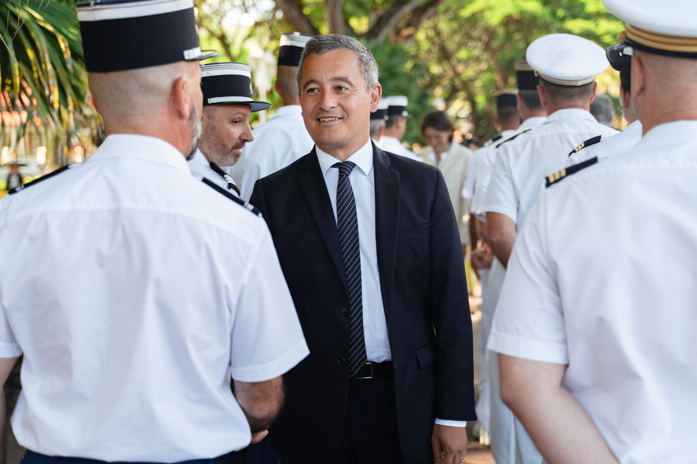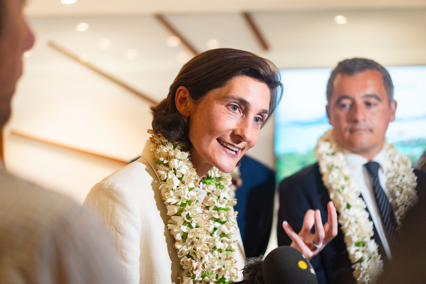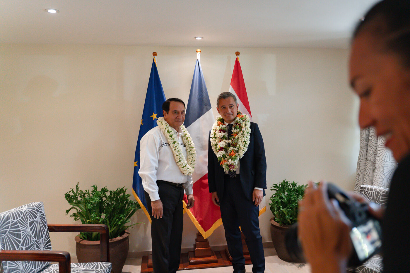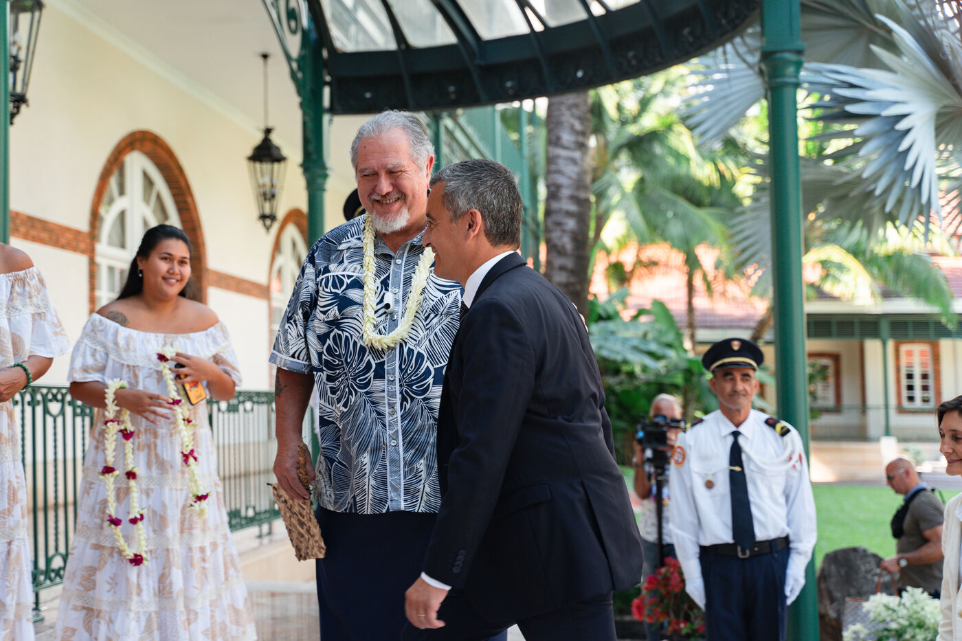 Déplacement en Polynésie française du ministre de l'Interieur et des Outre-mer Gérald Darmanin, de la Ministre des Sports et des Jeux Olympiques et Paralympiques Amélie Oudea-Castera, et du Ministre délégué chargé des Outre-mer Philippe Vigier. A leur arrivée à l'aéroport international de Tahiti-Faa'a, ils ont été accueilli comme le veut la tradition par un groupe de danse tahitienne, avant de se rendre à Papeete pour un dépôt de gerbe au monument aux morts et une visite de courtoisie à Moetai Brotherson, Président de la Polynésie française, et à Antony Géros président de l'Assemblée de la Polynésie française.