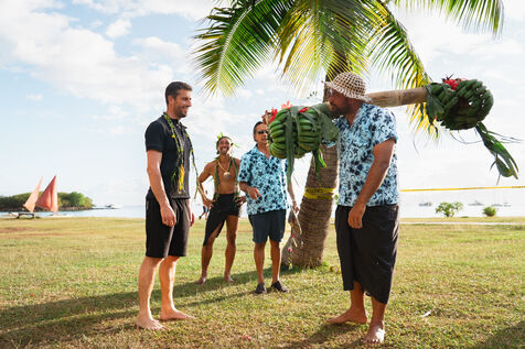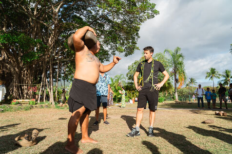 Tahiti - Tony Estanguet introduced to traditional Polynesian sports