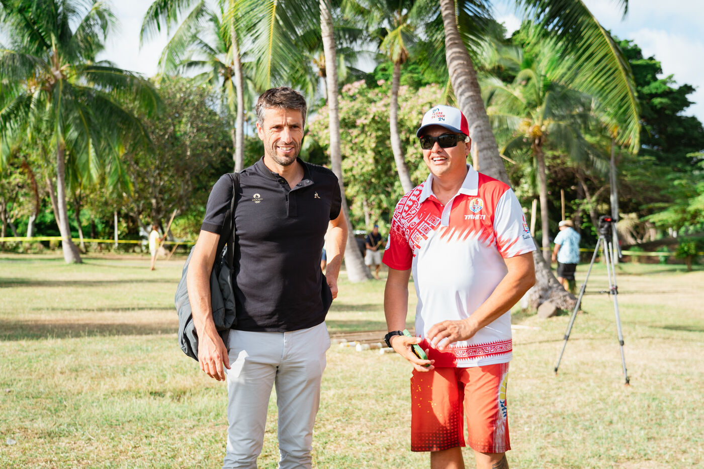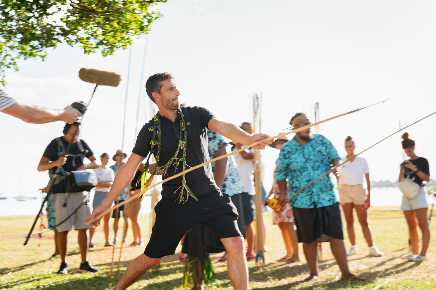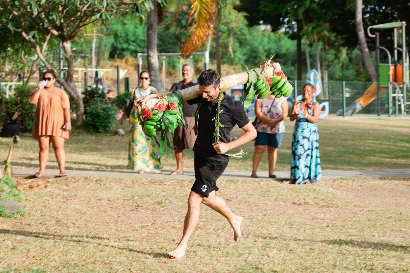 Tony Estanguet, président des jeux olympiques de Paris 2024, effectue une dernière visite en Polynésie francaise avant le début des Jeux. Il est initié à cette occasion aux sports et jeux traditionnels polynesiens, comme le lancer de javelot, le lever de pierre, la pirogue à voile polynésienne, la course de porteurs de fruits et le débourrage de noix de coco.