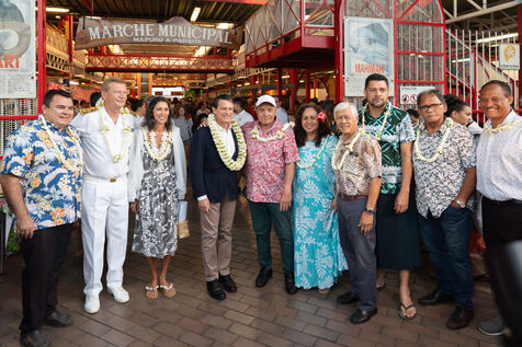 Le Ministre des Outre-Mer Manuel Valls visite le marché de Papeete un dimanche matin, et ses exposants de fruits, légumes, poissons, d'artisanat.