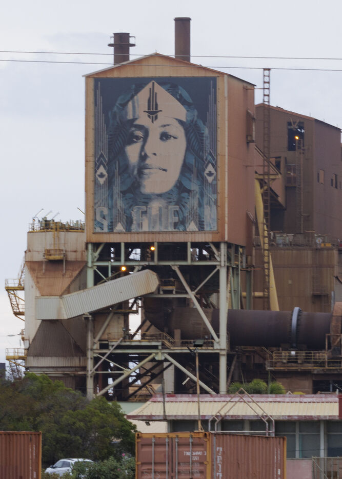 In New Caledonia, when you arrive at Tontouta Airport to reach the capital Nouméa, you cannot miss the rusty scrap metal behemoth on the Doniambo peninsula: the Société Le Nickel (SLN) metallurgical plant. This New Caledonian company, a subsidiary of the Eramet group, the world's leading producer of ferronickel, is a century old. In addition to its imposing size, facing the autonomous port, a stone's throw from the city centre, the factory displays a huge (19 metres high by 15 metres wide) portrait of a woman on one of its facades. This 285 m² banner, a reproduction of street artist Famax's work entitled - S. ELLE N -, was unveiled in 2020 on the International Day for the Elimination of Violence against Women. The artwork depicts the face of Marie-Claude Condoya, a 29-year-old engineer at SLN, wearing a tiara inspired by that of Wonder Woman.