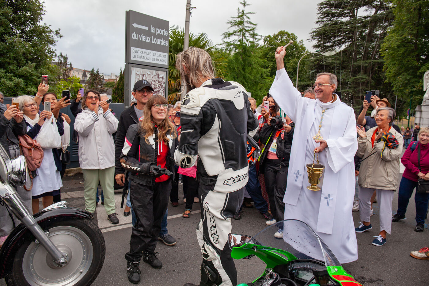 A marriage proposal, motorcyclists, soldiers, brass bands, horsemen in costume, an Italian singer, etc., are not necessarily what you expect when you go on a pilgrimage to Lourdes.