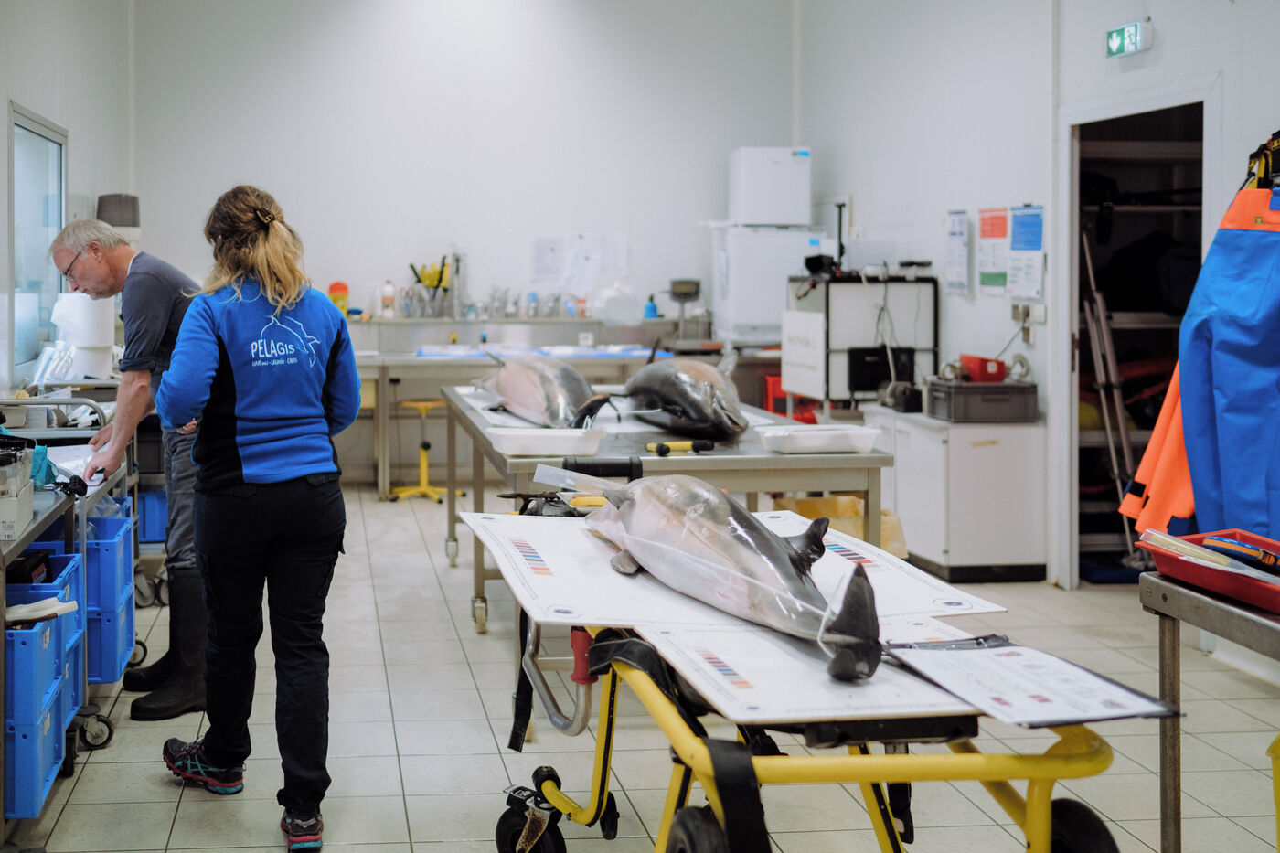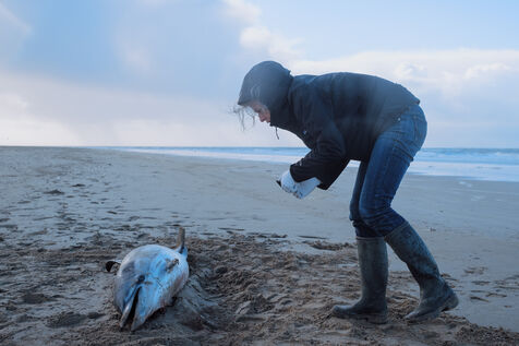 Les correspondants du Réseau National des Echouages, coordonné par l'observatoire et institut de recherche du CNRS Pelagis, se rendent tout au long de l'année auprès des animaux signalés par des promeneurs. Ils identifient l'espèce, documentent d'éventuelles traces de capture (hématomes, perforations, amputations...) et prélèvent parfois des organes, dont l'analyse permet de suivre l'état de santé des populations. Pour Pelagis, le taux de mortalité actuel des dauphins communs du golfe de Gascogne met en péril la population à l'échelle de quelques décennies. "Les dauphins viennent dans le golfe et ils y meurent", assure Hélène Peltier, chercheuse.