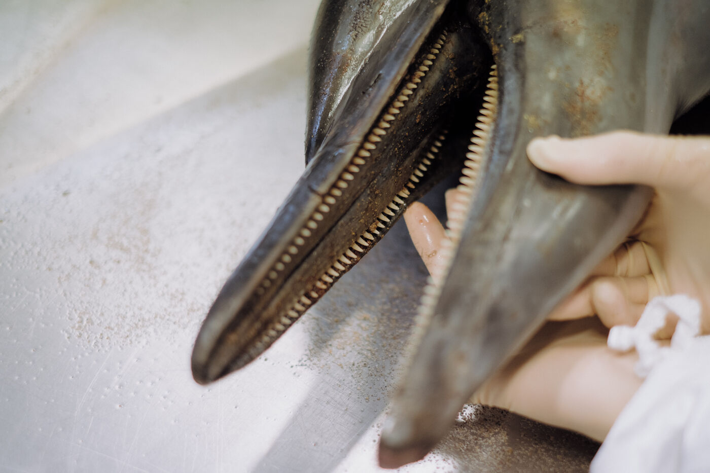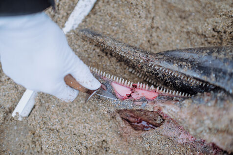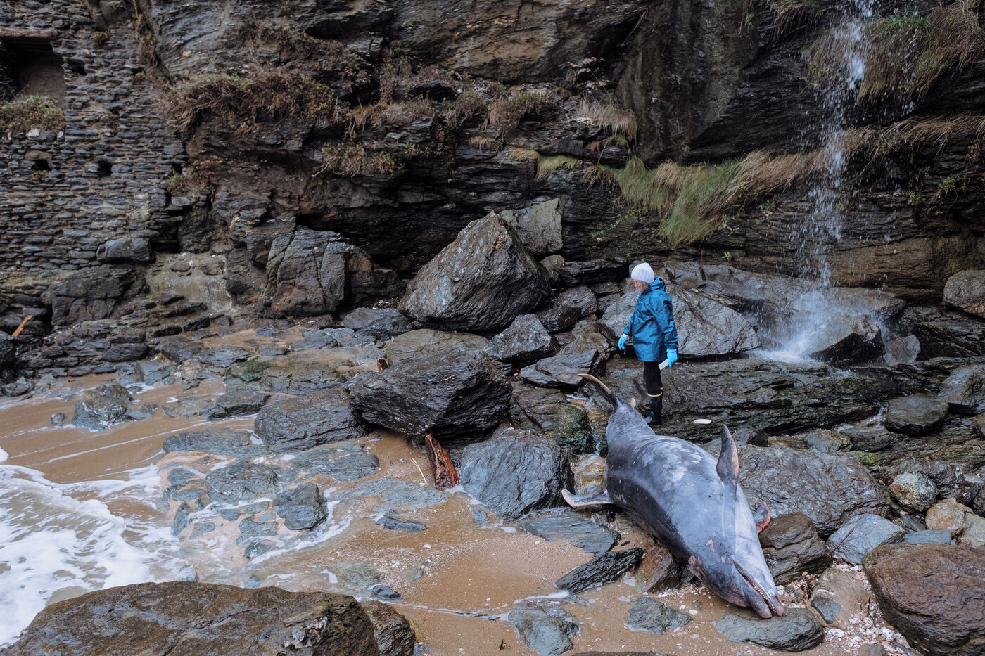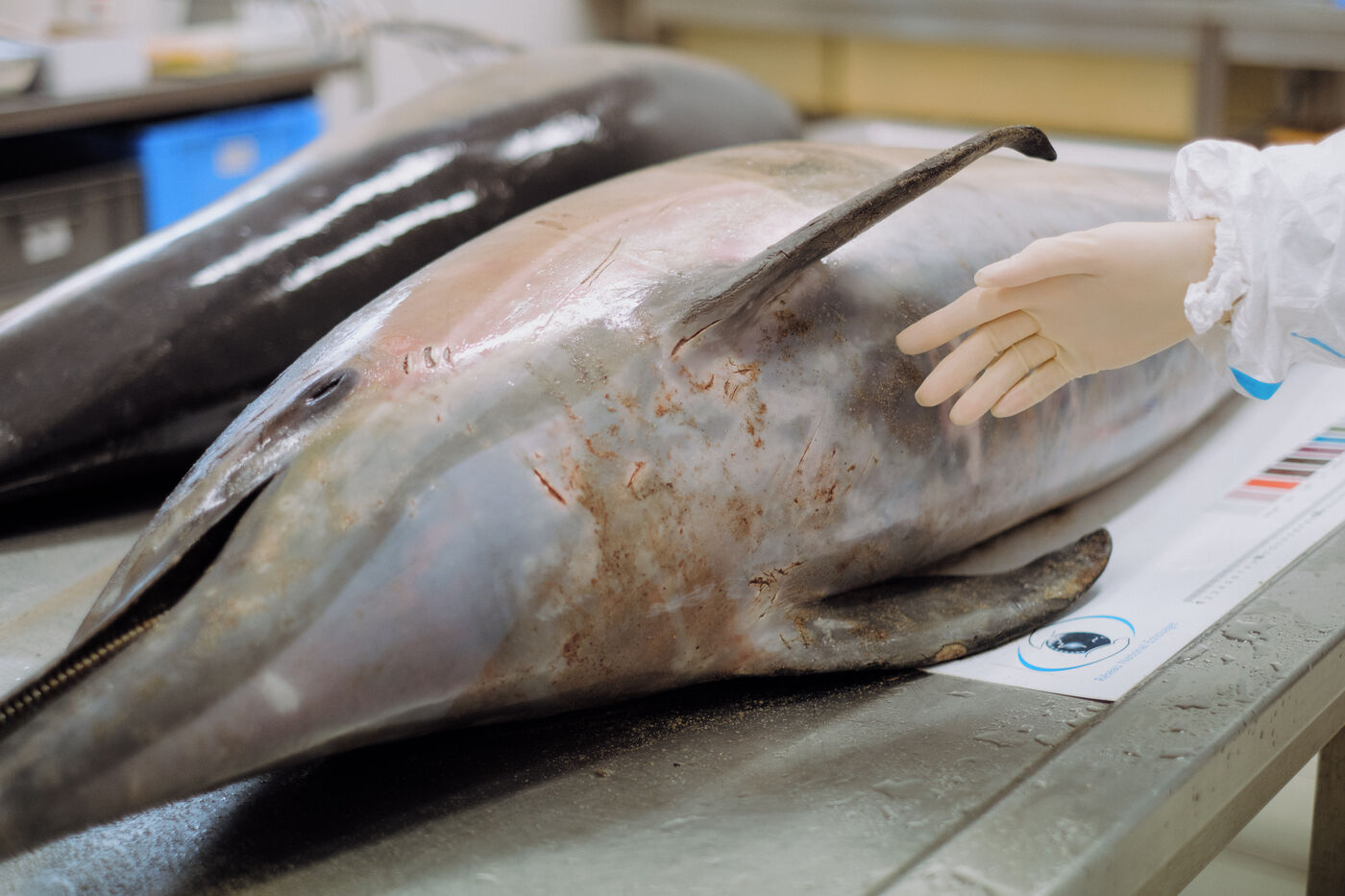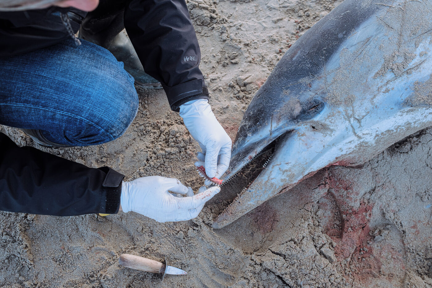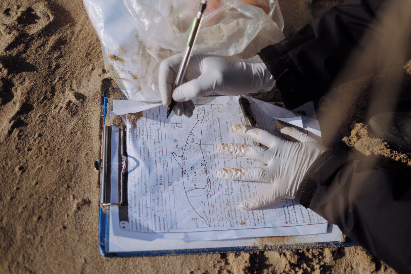 Correspondents from the Réseau National des Echouages, coordinated by the CNRS Pelagis observatory and research institute, visit animals reported by walkers throughout the year. They identify the species, document any traces of capture (haematomas, perforations, amputations, etc.) and sometimes remove organs, which are analyzed to monitor the health of populations. For Pelagis, the current mortality rate of common dolphins in the Bay of Biscay puts the population at risk within a few decades. "Dolphins come to the Bay and they die there," assures researcher Hélène Peltier.