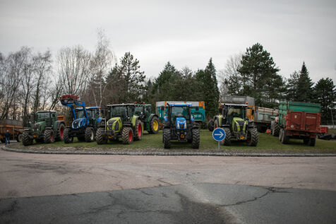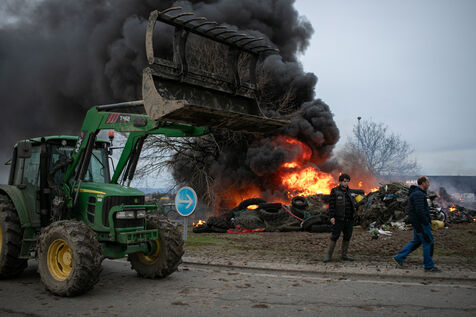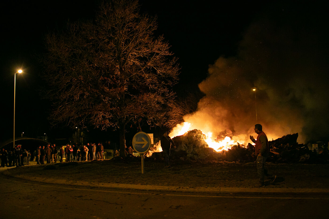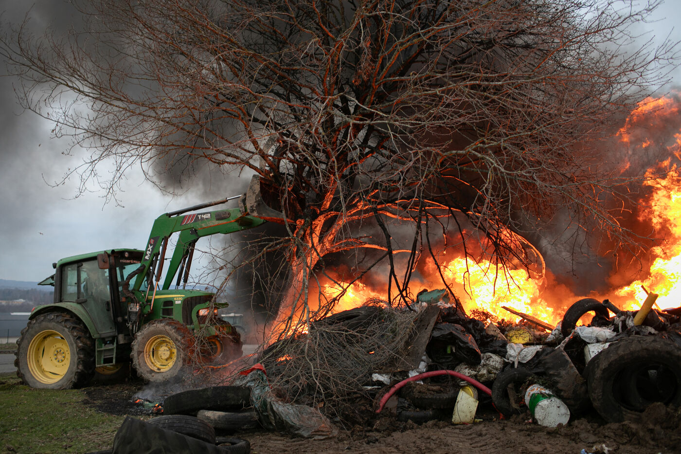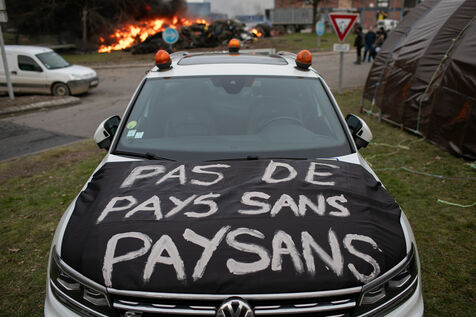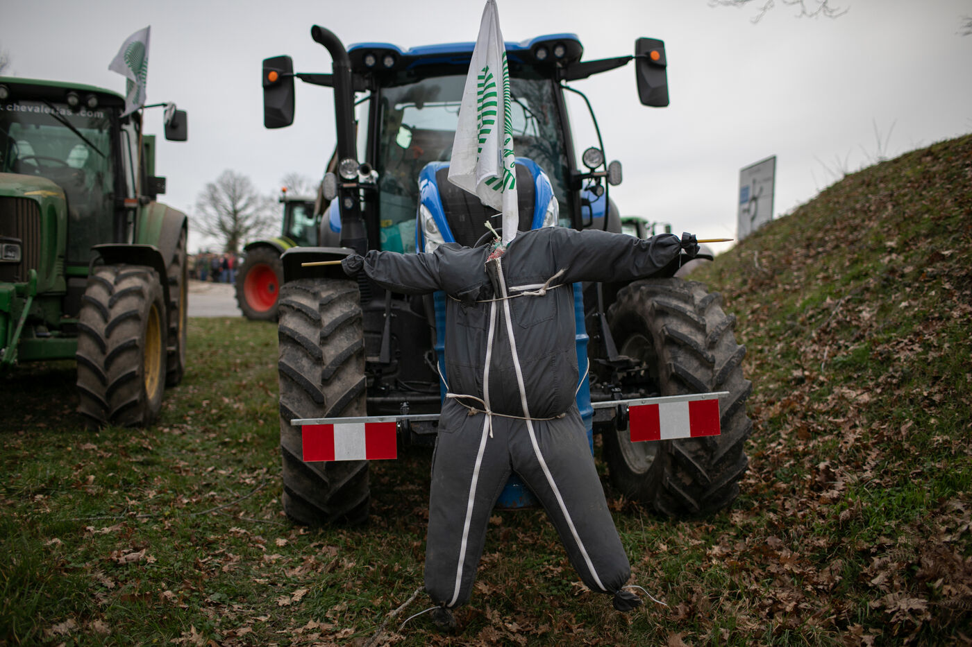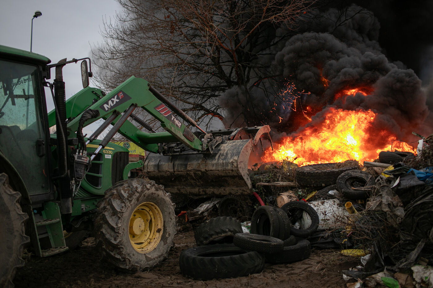 FRANCE, Limoges January 29, 2024, Blockade of the A20 at Boisseuil in Limoges' southern commercial zone. The FNSEA and Jeunes Agriculteurs unions called for a siege of Paris and a blockade of the main freeways from 2pm this Monday, after failing to get a satisfactory response from the government's announcements, for all farmers' unions. In particular, they are calling for a simplification of environmental standards, better remuneration and the introduction of levers to compensate for the taxation of non-road diesel fuel. Photography for Victoria Valdivia Trigo / Hans Lucas.